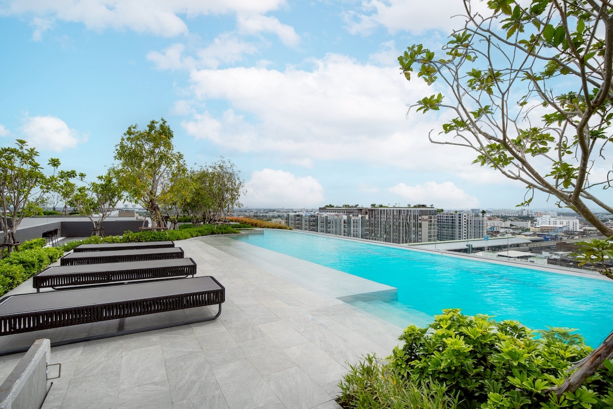 Luxuriously decorated spacious unit of 2 bedrooms and 1 bathroom for up to 4 guests to stay comfortably. 2 mins walk to BTS. Hygiene and security are our top priorities. Room services - Wifi - Netflix - Body and Hair Shampoo - Hair Dryer - Laundry Machine - Dish&Glass Tableware - Digital Lock Communal facilities - Rooftop Swimming Pool - Rooftop Garden - Fitness - Parking