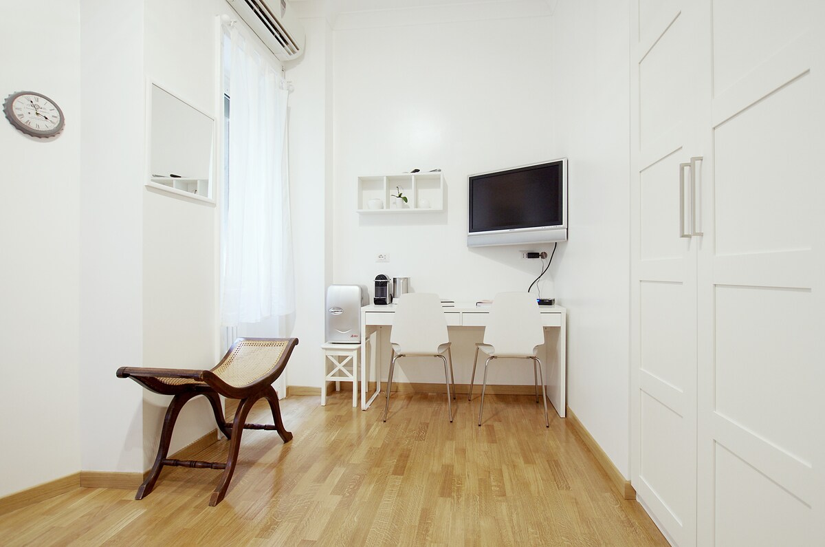 The suite is equipped with WiFi, TV, air conditioning, kitchenette and toilet with shower. In each room you will find a tray with sealed doses of jams, Nutella, biscuits, rusks, coffee pods and hot drinks to be consumed independently with the "Nescafè" machine, kettle for tea and toaster. For your complete autonomy during your stay, the room key is in the key box next to the door.