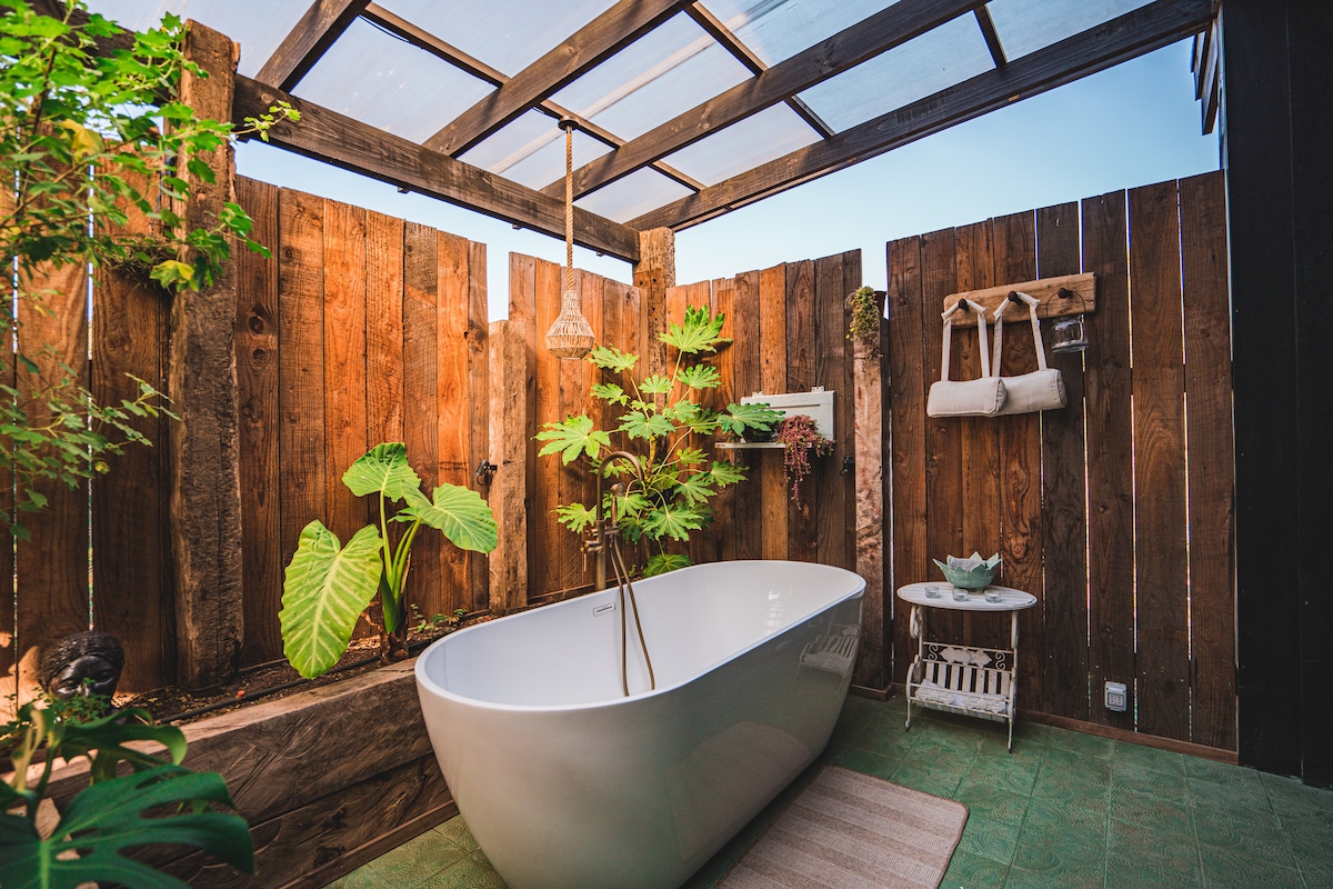 Boutique cabin with outdoor tub