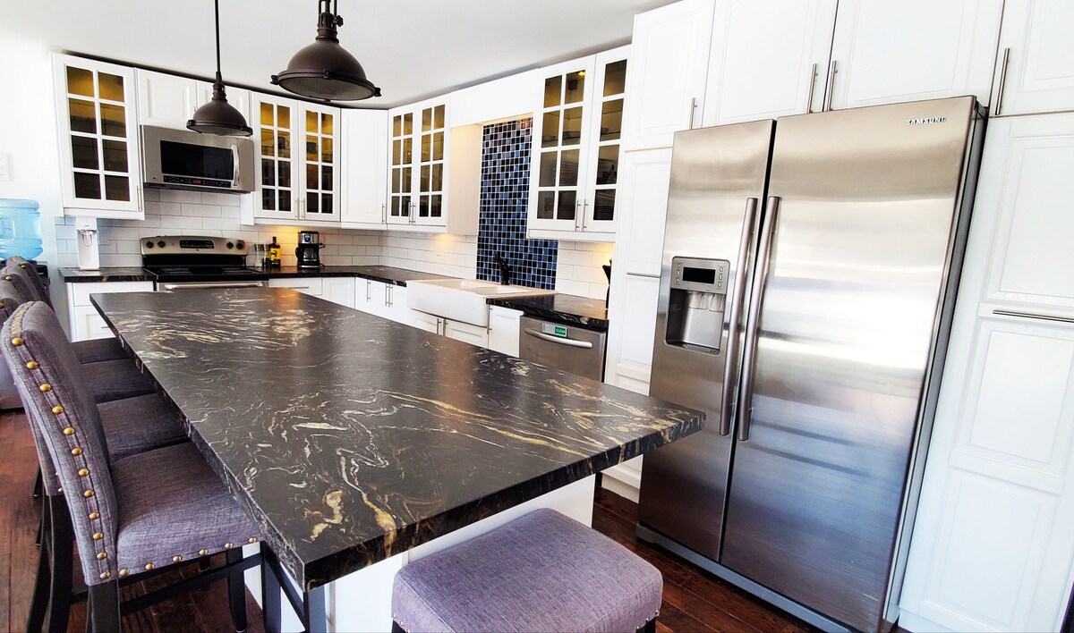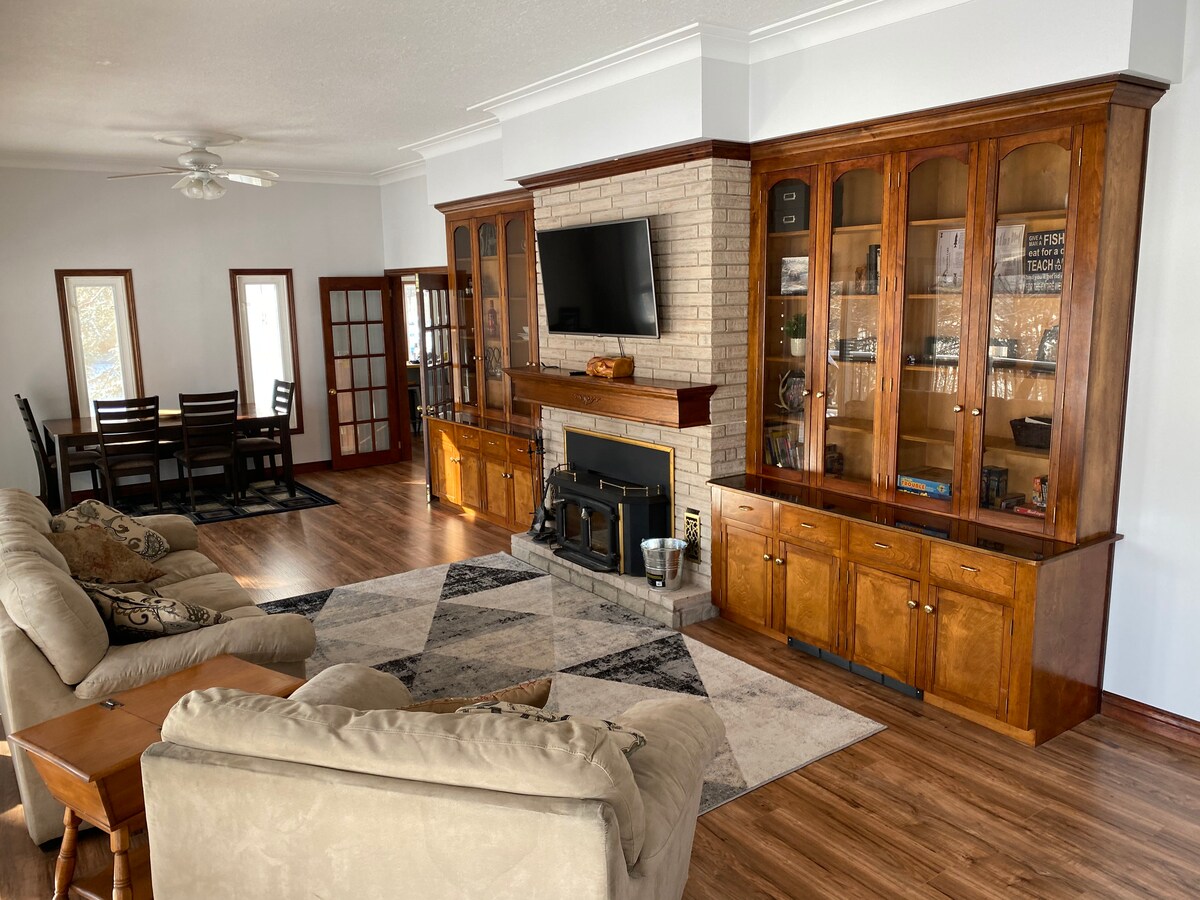 OUTDOOR SAUNA WITH STEAM GENERATOR AND 7FT BRUNSWICK POOL TABLE ➣ Welcome to our 2048 sqft waterfront cottage. Just 2.5 hours away from Toronto, our place is perfect for couples, and families looking to spend a relaxing and lively trip. ➣ Pass your time relaxing inside our clean and comfortable cottage, cozying up near the fire pit, dipping your feet on the dock, taking a kayak or paddle boat into the water or unwinding by spending an hour in the wood-burning barrel sauna.