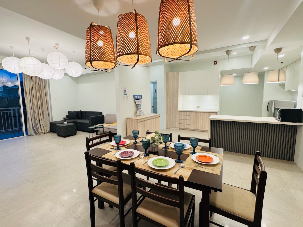 *Lovely 55 sqm 1 bd quality unit in Myna B, separate kitchen layout, cozy bedroom -LR/DR combo, with balcony and sink & patio furniture to dine out. *Unit has hot & cold water in the shower room *55 " Samsung Curved UHDTV, internet connection up to 400 mpbs *Fully equip kitchen w/ toaster, rice cooker, kettle, ref, microwave, air fyer, plates & glasses of your choice, kitchen towels, dish soap. *Free guest parking & with internet.