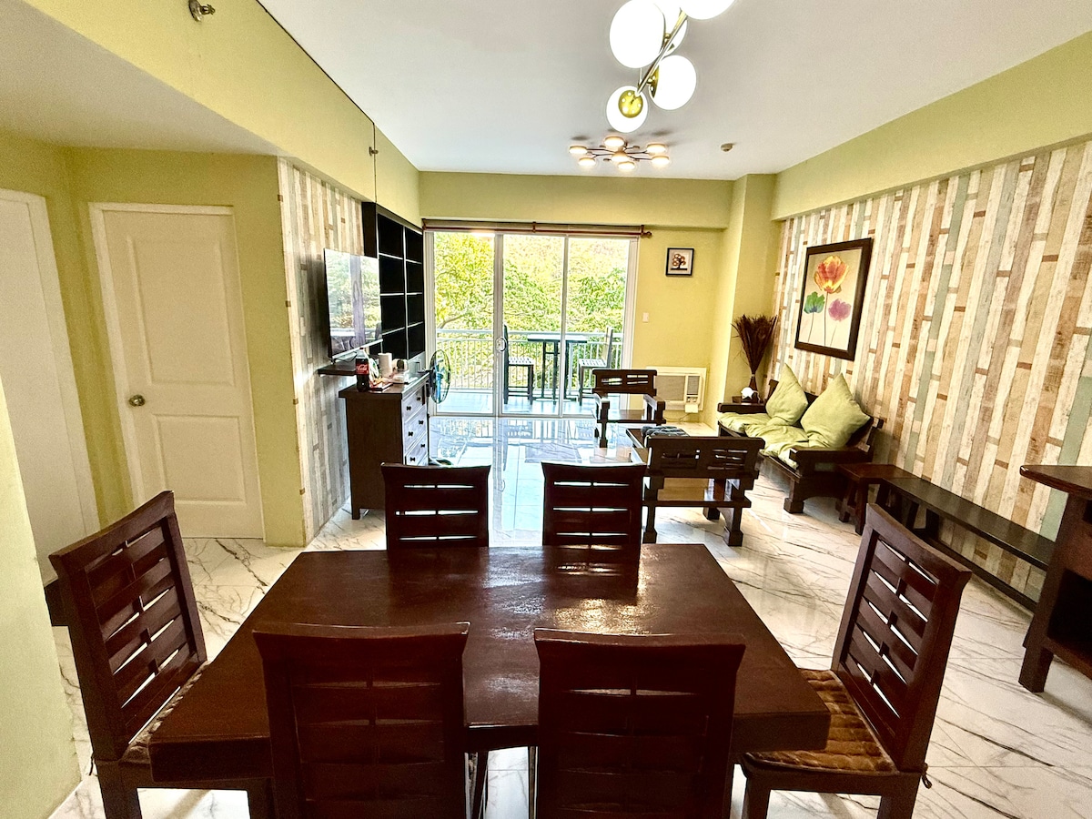 Refreshing Mountain view with balcony. With WIFI (FiberX) and NETFLIX, good for work from home set up. Comfortable for 6 pax can fit 7 pax. 1 Queen size bed 1 King size bed 2 Extra mattresses (always provided)