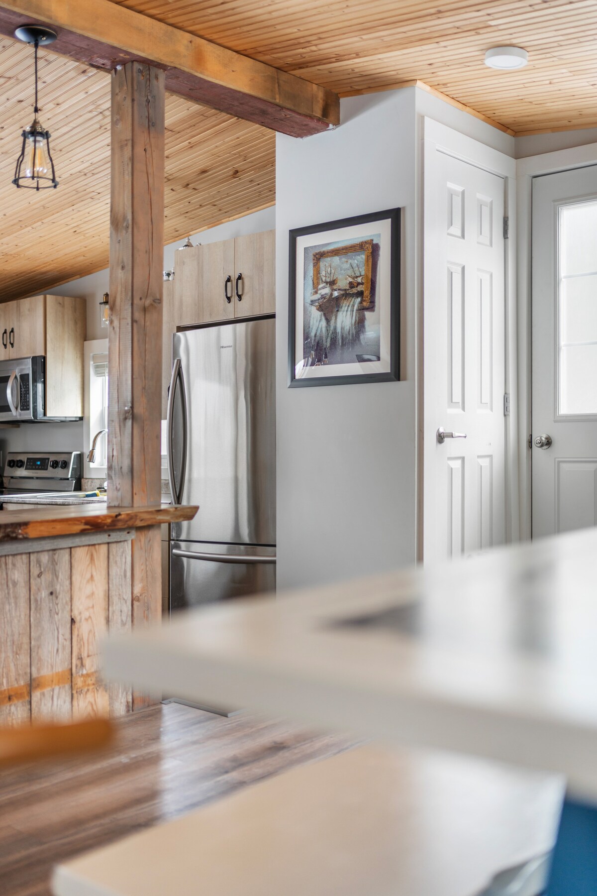 The “Kenzie B” cottage is a newly built cottage with unique features throughout like a sliding steel barn door, a steel shower and old barn beams along the ceiling. The covered veranda off the front of the cottage provides you with stunning views of the tidal river and a private hot tub overlooks the river as well. Swim, boat, float, whatever you wish, the river awaits! We also have a motorized floating picnic table for rent if you'd like to explore the river some more.