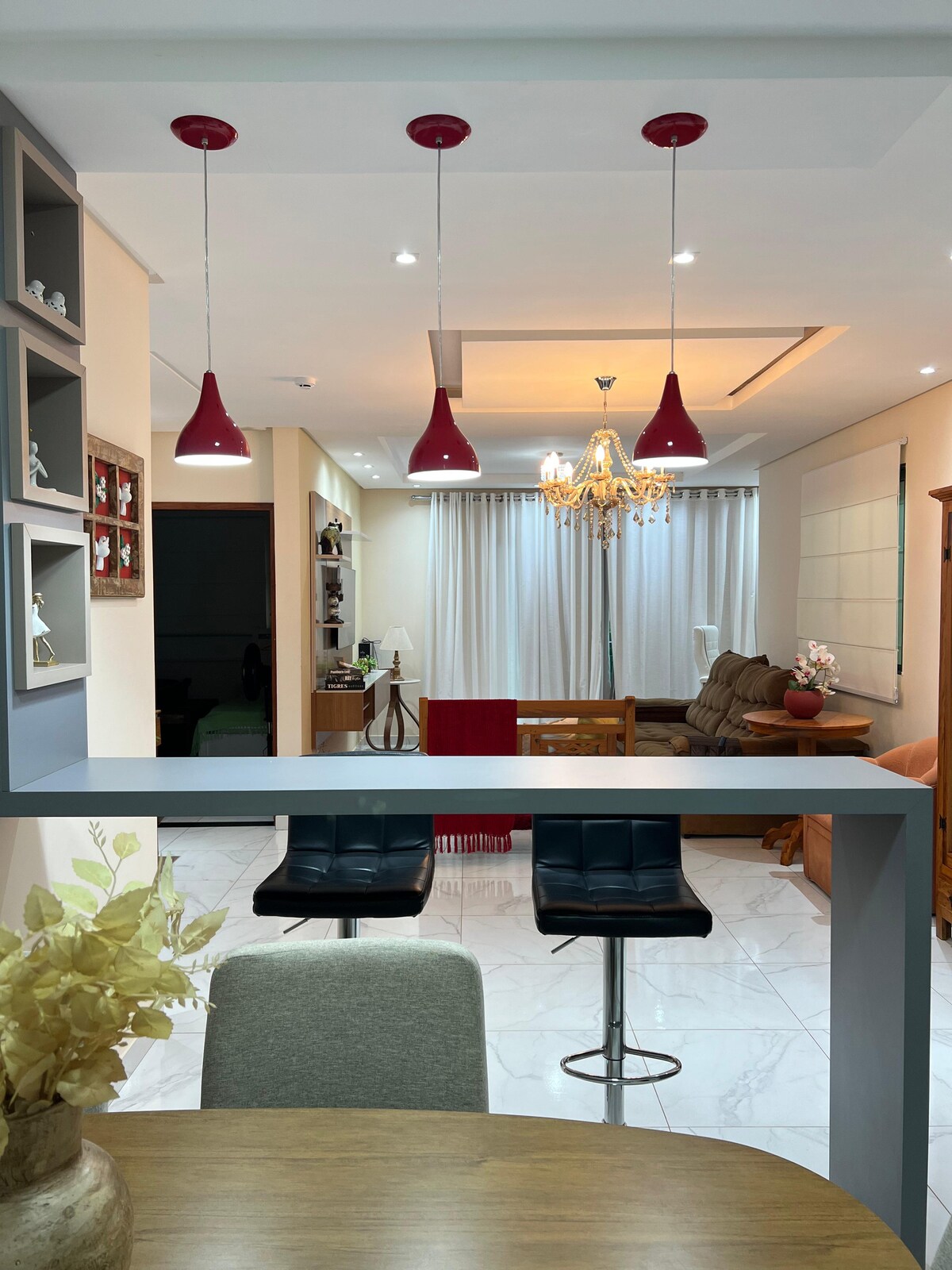 📍Self Check in 📍Garagem 📍Cozinha Completa 📍Wi-Fi 📍Lavadora e /ou secadora 📍Roupa de cama mesa e banho 📍2 cama de casal 📍2cama de solteiro 📍Berço pra bebê 📍Cadeira pra alimentação do bebê 📍2 banheiros (1 suite) 📍2 quartos 📍Sala confortável com TV 📍Sala de jantar 📍Sacada Com Vista Pra Avenida Principal 📍Terraço 📍Quintal 📍Permitido animais 📍Ao lado do supermercado e restaurante