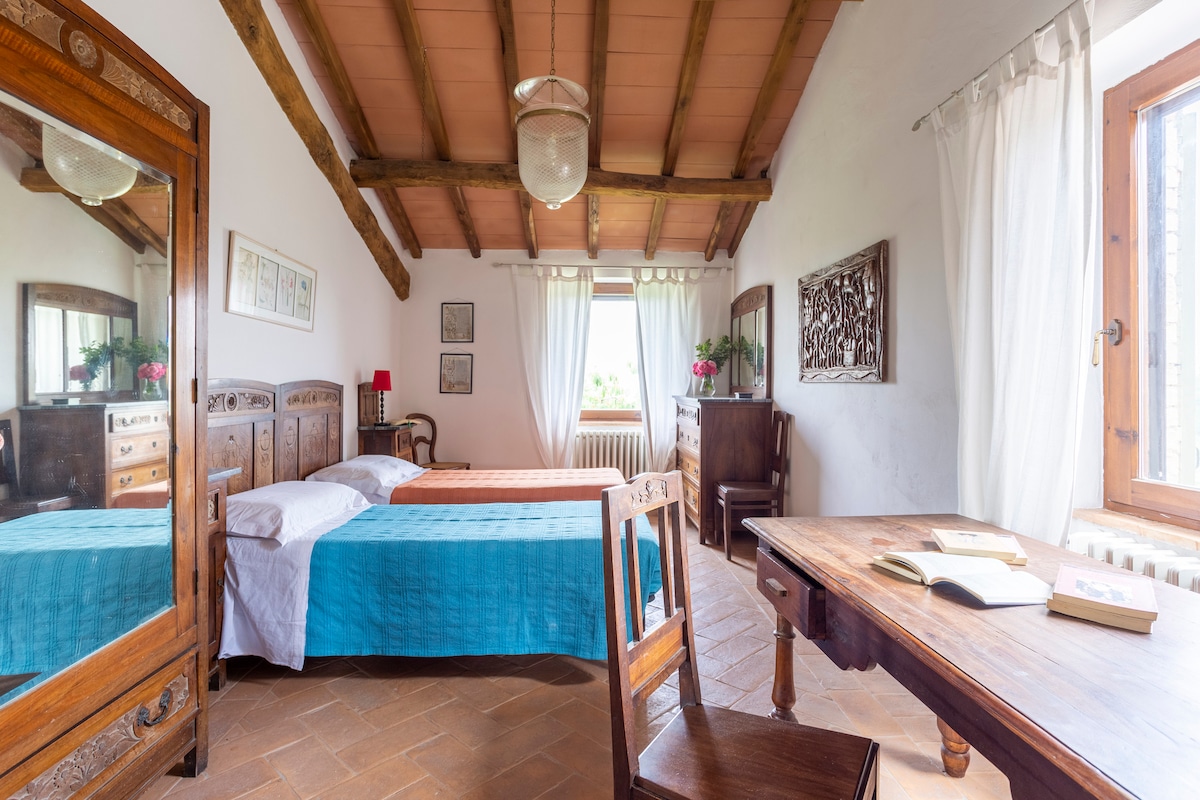 Heaven's Window takes your breath away. As our only guests, you will be surrounded by infinite views, endless tranquility, sounds of singing birds and calling deer. Down the valley and on your walks you may spot foxes ferrets and wild boar. Collect porcupine quills. Breathe! Halfway between Rome and Florence. Close to Siena, Val d’Orcia and countless hot springs . A private paradise surrounded by divine dining and hilltop jewels of antiquity like Montepulciano and Montalcino of sublime wines.