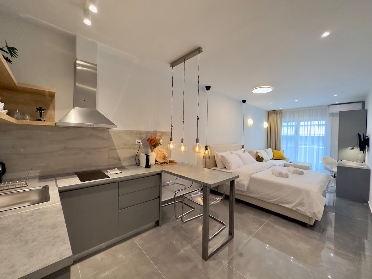 With a contemporary and modern design, our apartment Z1 has a total size of 65 square meters. The apartment offer a spacioys bedroom wich equipped with anatomic mattress's, a fully equipped kitchen, Netflix and super fast internet (100 Mbps) that will offer you not just another stay but a unforgettable experience! Just 100 metres from Aristotelous Square, Saint Sofia Square, White tower and Church of Agios Dimitrios. City skyline views can be seen all from the balcony.