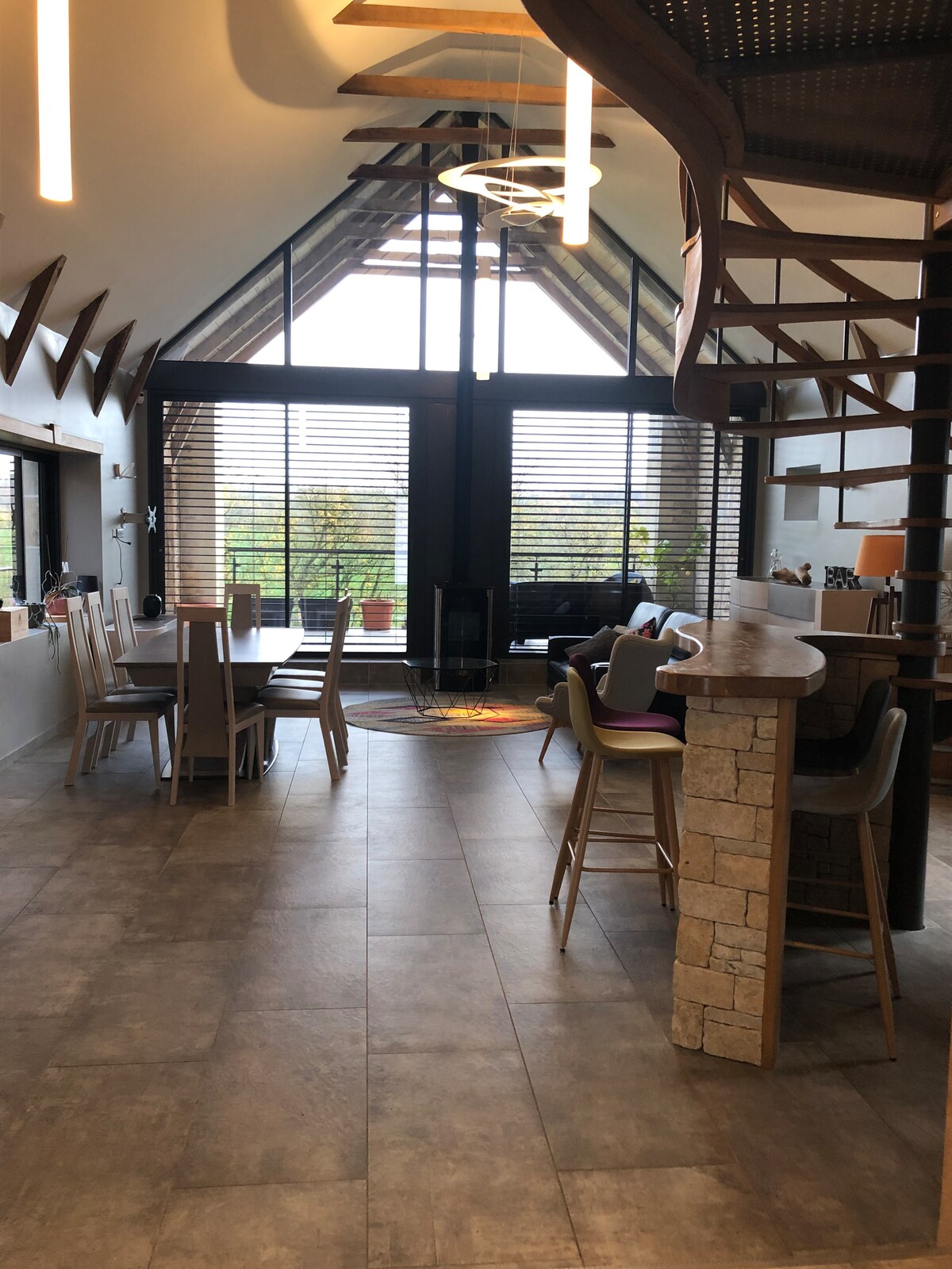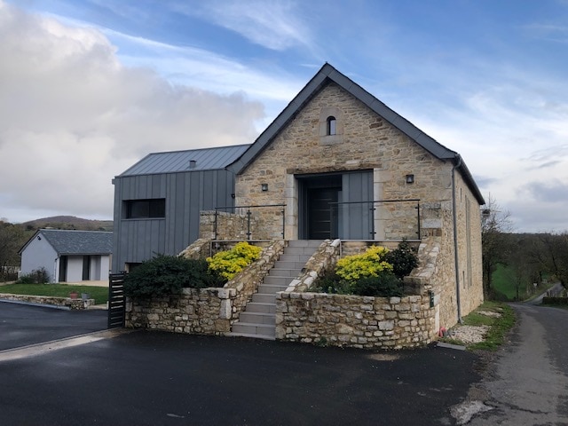 L'Alrance is one of our two accommodations located in the popular area known as the Château de Bozouls, above the canyon (geological curiosity 400 m in diameter and 100 m deep). The Bozouls Hole is an atypical natural horseshoe-shaped cirque. This meander was born from the L'Alrance and Dourdou rivers. Our accommodation is an architectural creation in wooden frame, metal cladding and dry stone gables. It is part of a site classified as a sensitive natural area.