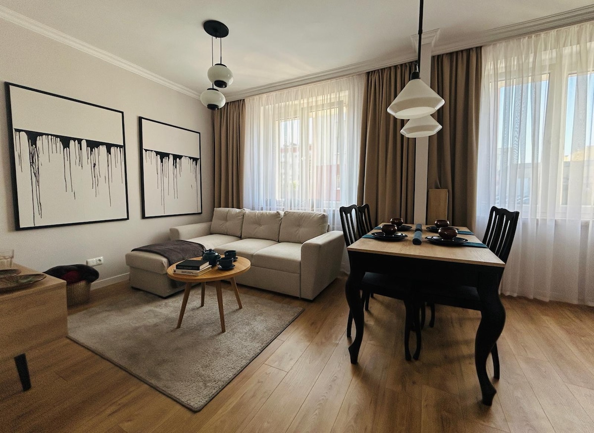 Zapraszamy do świeżo wykończonego apartamentu. Nowoczesny w pełni wyposażony apartament w centrum, internet i Netflix w cenie. Samodzielne zameldowanie. W pełni wyposażona kuchnia: zmywarka, piekarnik, lodówka, ekspres do kawy, ręczniki, pościel, pralko-suszarka. Wykończone w wysokim standardzie Blisko przystanek, 200m Lidl, Dworzec PKP 2,5km Nie wystawiamy fv vat - wynajem prywatny. Zakaz działalności komercyjnej! Zakaz przebywania więcej osób niż zgłoszono w rezerwacji.