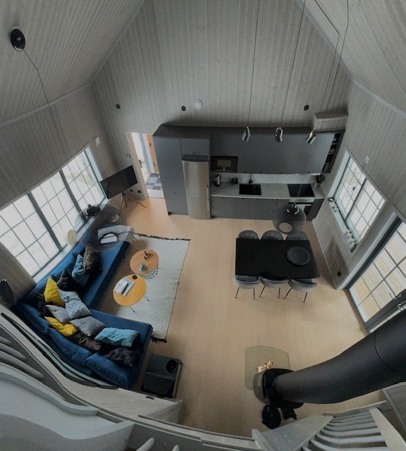 Located within a 30 minutes drive from Östersunds citylife and pristine wilderness of Oviken Mountains you find Bjärme lined up by forests and open fields. The cabin has a modern Scandinavian feel to it and you can literally enjoy the northern lights during the winters right on your doorstep. Next to the cabin, you'll find a private jacuzzi (open may - december) and a wood-fired sauna — the perfect retreat for unwinding and enjoying tranquility.