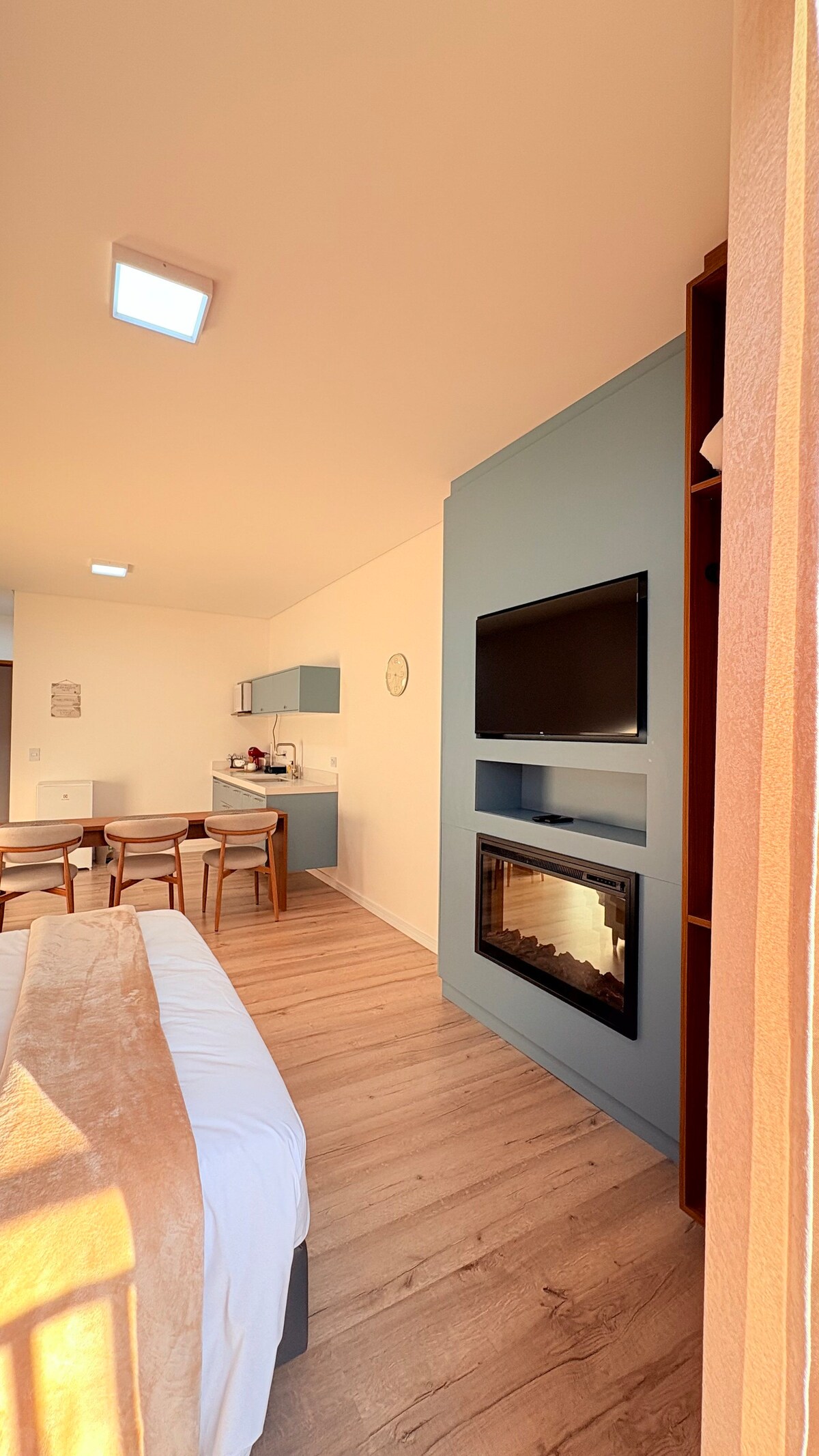 Apartment for couples looking for a comfortable and cozy space. Located in the commercial center of Campos do Jordão, ideal for hiking and easy access to other tourist attractions. Comfortable double bed, heated shower and mountain view. Host family prepares everything with great care to welcome guests. The suite is located on shared land and is accessed through an electronic gate and individual key. The family is helpful and ensures privacy.
