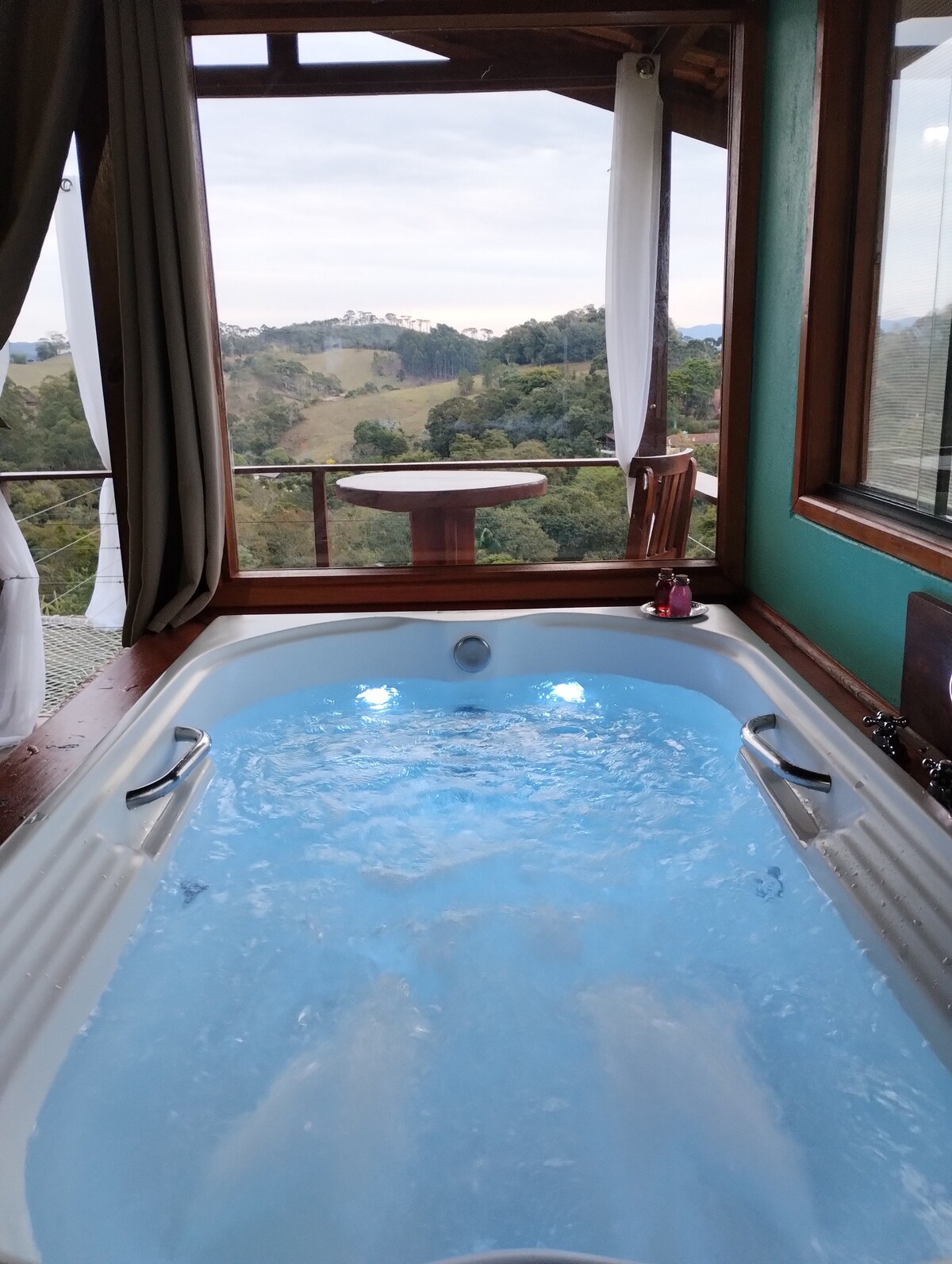 Chalé Crystal very close to the center . Bathtub with chromotherapy In a place surrounded by nature , very cozy, quiet is very reserved Standard size double bed With bedding , pillow , covered and towels All kitchen utensils are provided: cutlery, sandwich maker, blender, coffee maker, and fondue pot. Air conditioning is available for cooling only; the heating function is not activated, as we have a fireplace for that purpose. We can provide a bathrobe upon prior request and payment of R$40.