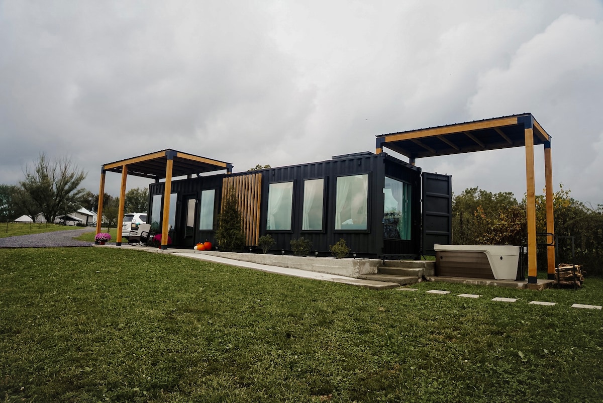Have you ever wanted to try out a Shipping Container Tiny Home in Dutch Country? Well look no further. Perched on a hilltop overlooking the rolling Blue Mountains and Texas Longhorn cattle grazing, this sweet tiny home offers a stylish, relaxing getaway where you can slow down for a few days with your favorite human. Cozy up on the rocker with a good book, soak and relax in the hot tub or spend the day as you enjoy a morning coffee or evening cocktail taking in the scenic valley.