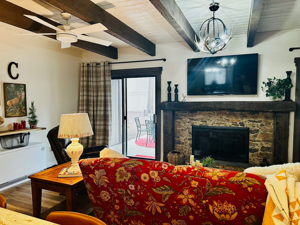 A Stylishly Unique 3 BR 2BA Home; The Bear Bungalow provides amenities, comfort and convenience to enjoy White Mountains to the fullest! Located just behind a local Brewery, you're also within paws reach to quickly get to local restaurants, outdoor excursions, shops & more. Find Your retreat year-round for Families, Groups, Couples and those that want to bring a pooch with a fully fenced yard. TVs in every room, A/C, Hot Tub, Kid Friendly & custom artisan touches with quality furnishings abound.