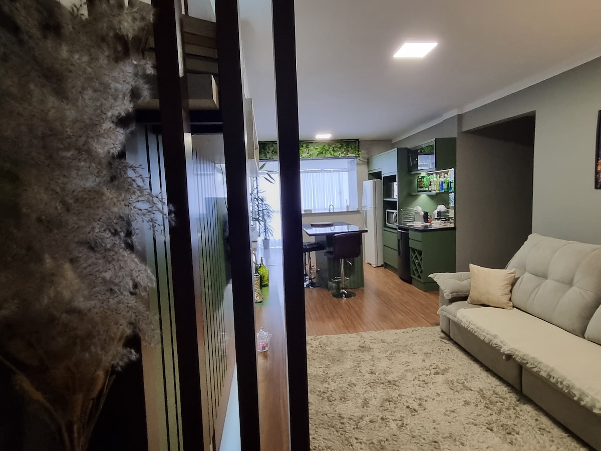 Enjoy an elegant experience in our upscale apartment in downtown Chapecó. The location is unbeatable: just steps from excellent restaurants, cafes, shops, hospitals and more, in a safe central region. This quiet retreat, situated at the back of the condominium, ensures low traffic noise and the warmth of the morning sun. Custom furniture and high-end configuration, every detail has been designed for your comfort. Relax in a sophisticated and quiet environment.