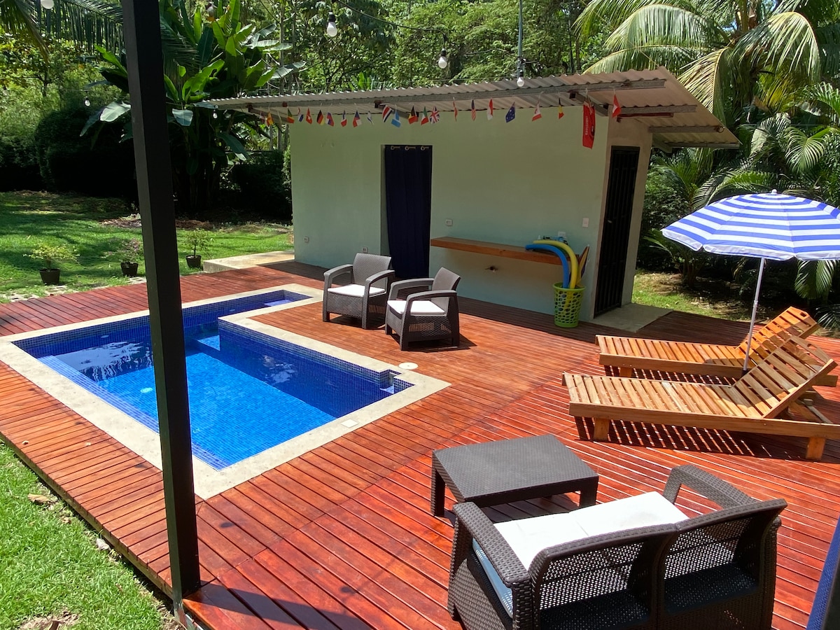 Beautiful 3 bed 3 bath Beach House set in a tranquil gated Beach Community surrounded by Tropical Forest, 200 meter walk to private beach! Extremely rare find on the coastline with access directly to Playa Ballena. Explore our’s & neighboring beaches by foot surrounded with wildlife. From Howler Monkeys, Toucans, Parrots, Turtles, Tide pool creatures, occasional Sloth sightings, & a plethora of fauna & flora. Relax & Grill by the private pool in a Tropical environment to end a perfect Beach Day.