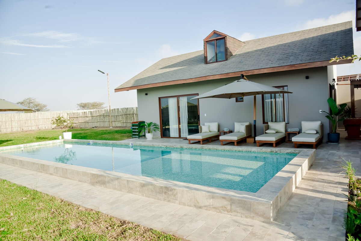 Take it easy at this unique and tranquil getaway. You will stay in a guest house in the countryside very close to the sea, with 62% of free areas, surrounded by nature, lagoons with resident and migratory birds, a few meters away (about 4 min. Approx. walking) you will find a beautiful beach with more than 2 km of extension, 24/7 surveillance. The Club House has a swimming pool, children's games, sports courts, 01 small or medium dog max 25 kilos NO AGGRESSIVE BREEDS with their vaccination card up to date