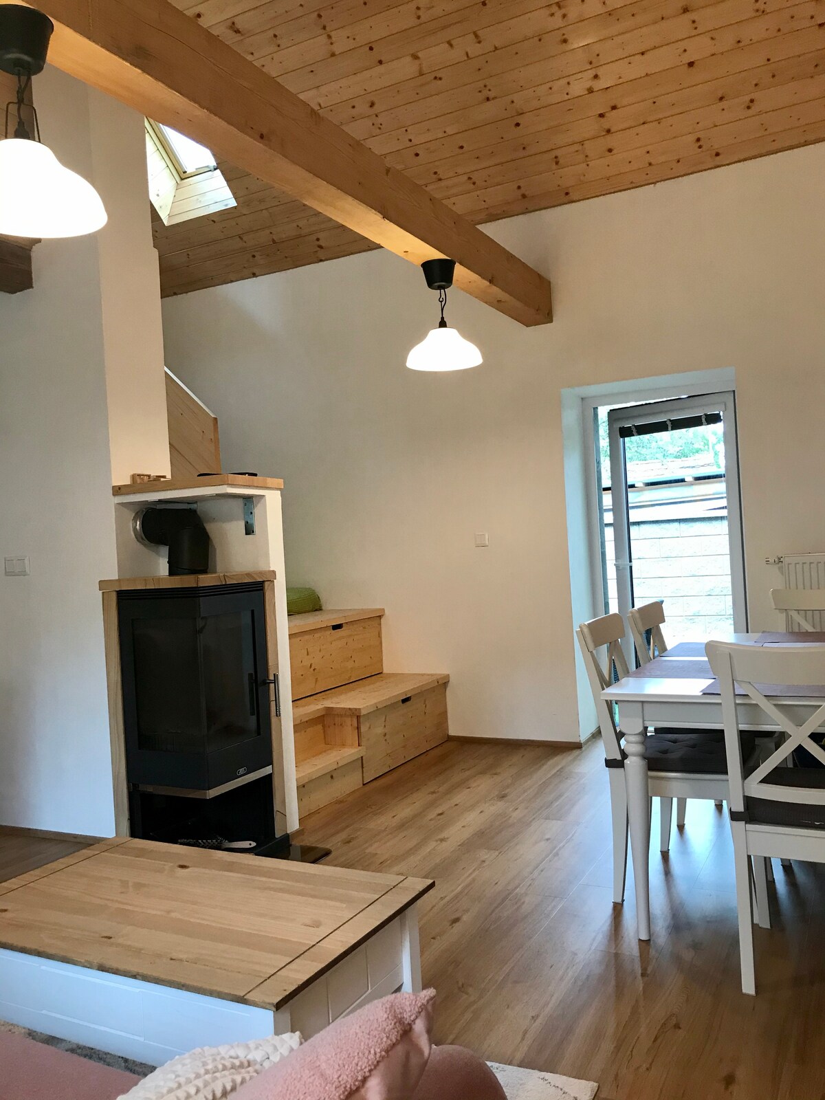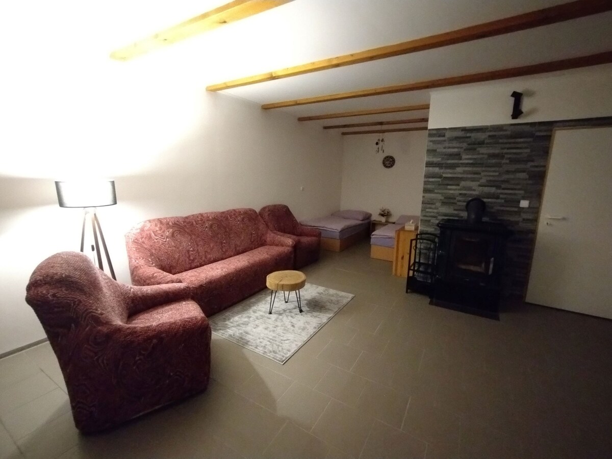 Our cottage is located in a semi-secluded forest by the Stropnice River. Although it may not look like it at first glance, there are neighbors nearby, but they are not visible from the cottage. Enjoy sitting by the crackling fireplace with a book and a cup of tea or breakfast on the terrace. There is no wifi in the cottage, so enjoy the time spent together.