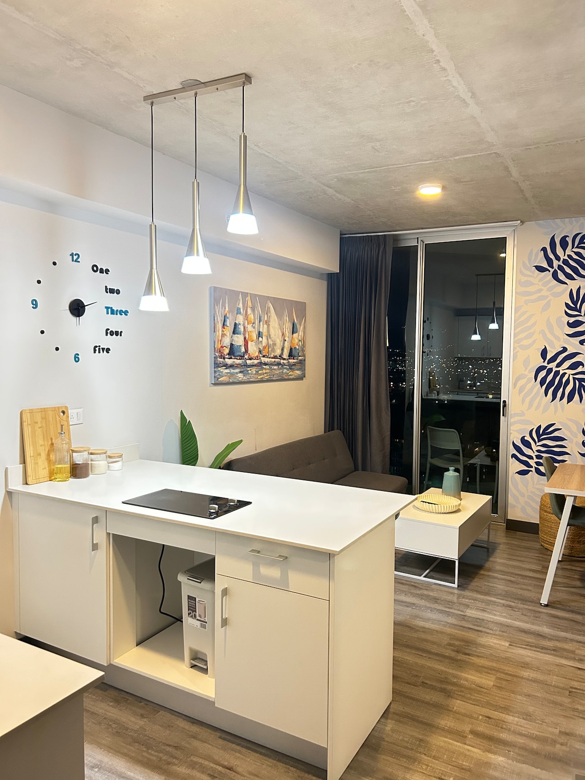 Experience San José from a modern apartment with panoramic city views in the exclusive Núcleo Sabana complex. Fully equipped with Wi-Fi 5G, Smart TV, full kitchen, and private parking. Enjoy premium amenities including a pool, gym, sauna, lap lanes, multi-sport court, karaoke room, and beautiful green areas. Located steps from La Sabana Park, and the National Stadium and any restaurants. Perfect for business travelers, couples, or anyone seeking comfort and style in Costa Rica’s lively capital.