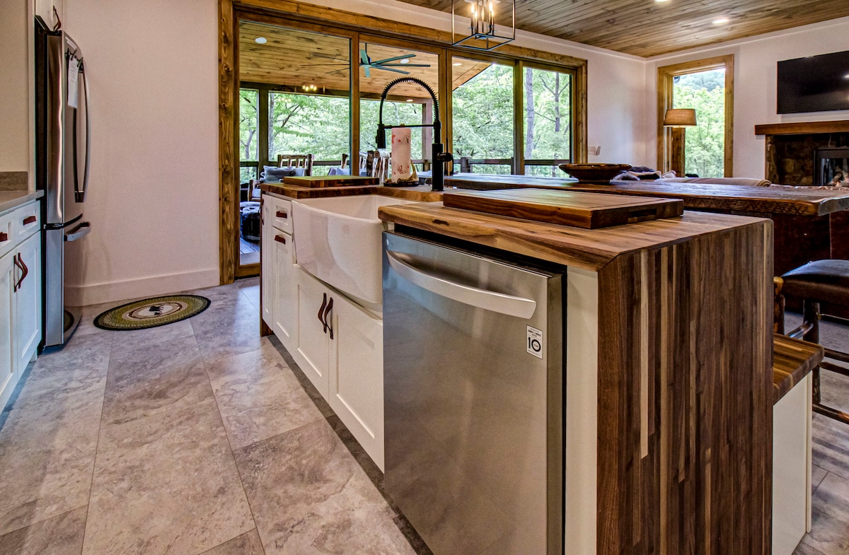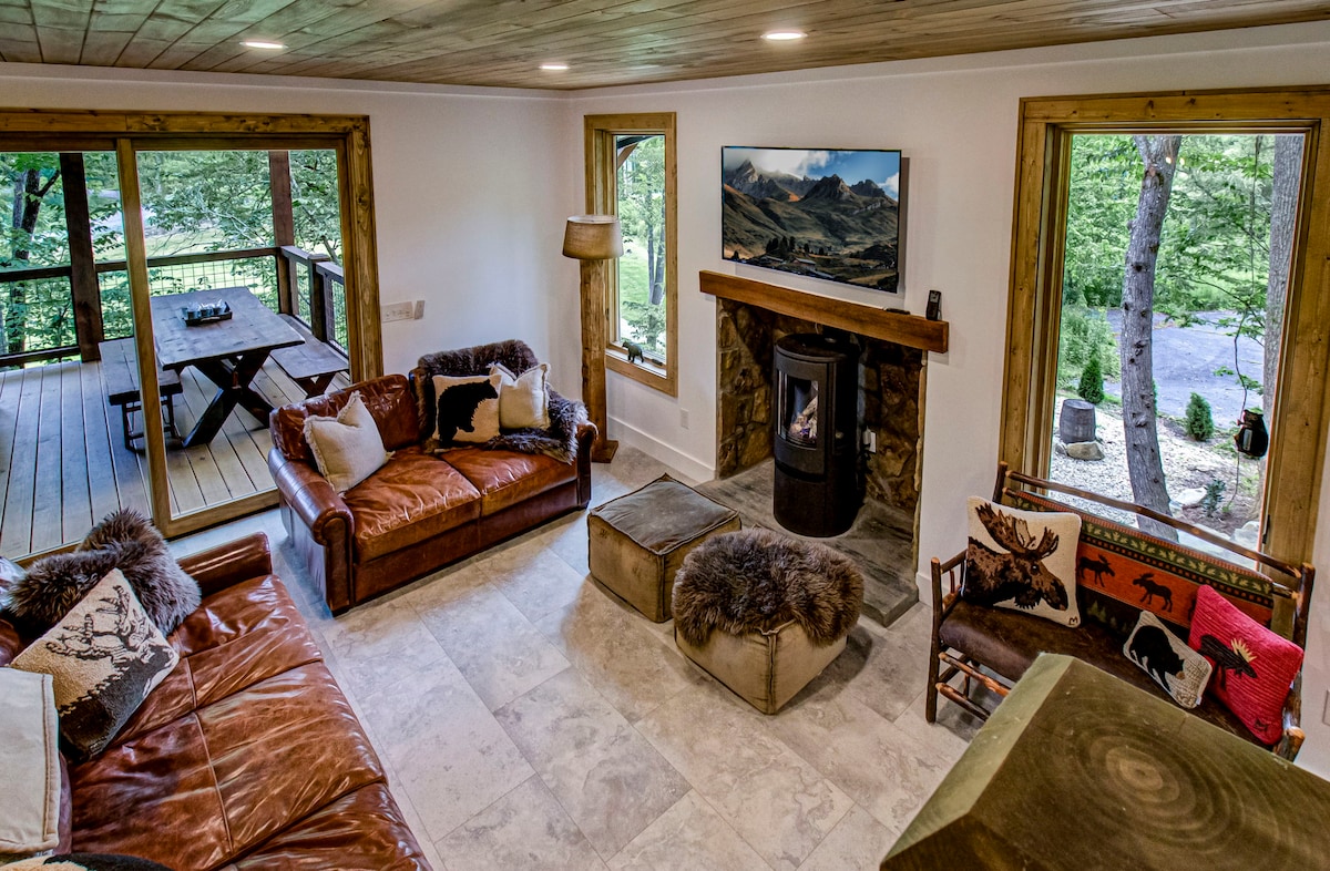 Please scan the QR code in the photos to view our feature video walkthrough on Destination Channels hit show Staycation! - 3 King Beds, 4 extra long twins, sleeps 10 -Chef's kitchen with gas range, Blackstone griddle, Traeger grill, TWO fridges -Indoor and outdoor gas fireplaces -Generac home generator -Hot tub, fire pit, and outdoor summer shower -Lots of parking and room for oversized vehicles/campers -Easy access, no steep mountain driving