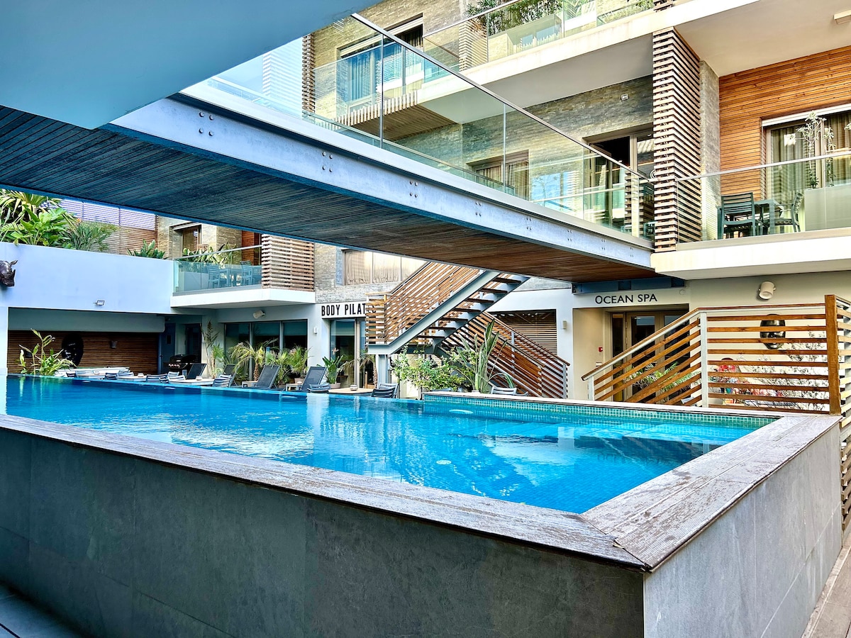 Ocean Park Aparthotel is a luxury hotel (category 1) located 50 meters from the sea and 200 meters from Sindibad Park, on the Casablanca Corniche. The Serviced Apartments have a 17-meter swimming pool, a reception, a breakfast room and gourmet showcases, a gym, a Business Corner, 3 seminar rooms, a concierge and other hotel services (Laundry, Housekeeping, 24-hour security, etc.).