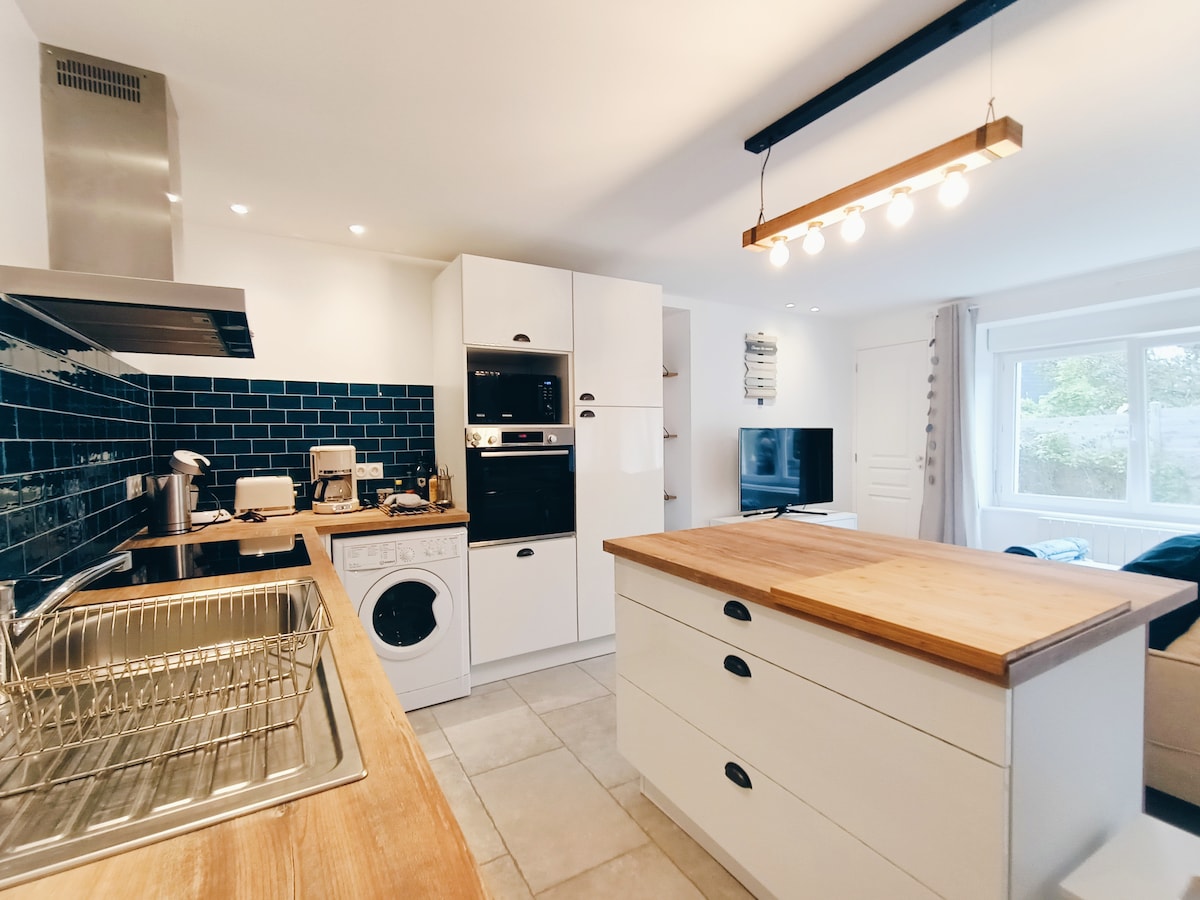 Beautiful apartment located opposite the port of Saint-Cast-Le-Guildo, 700 m from the large beach and the city center. Ideally located to discover the Emerald Coast, in close proximity to the iconic Fort la Latte, Ebihens Island, etc. Guests can enjoy all activities, diving, kayaking, boats, sailing... The apartment has a double bed and a cabin bedroom with two beds. Enjoy a fully equipped kitchen, or restaurants on the harbor…
