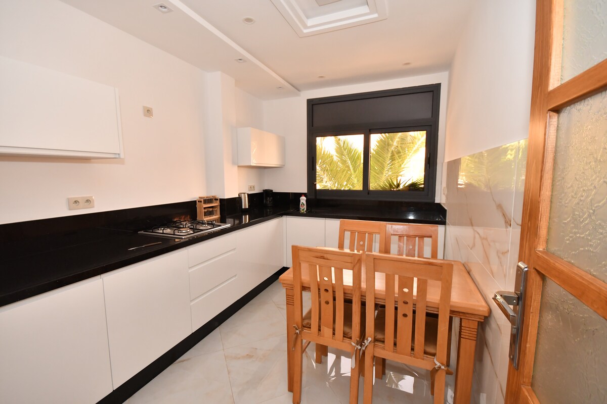 Welcome to this beautiful new apartment located just 3 km from downtown Al Hoceima, in a highly secure private residence with 24/7 surveillance. Enjoy a relaxing stay in a modern, elegant and fully equipped space. You will be amazed by the direct view of the sea and the Rif mountains, a soothing atmosphere, ideal for couples, families or travelers looking for tranquility.