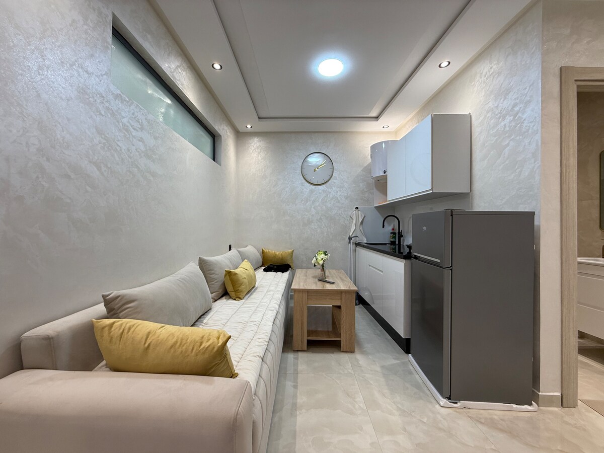 Enjoy a cozy and functional studio, perfect for solo travelers or married couples, a short walk to Sfiha beach. 🛏️ Comfortable sleeping area with double bed and storage. 🛋️ Pleasant lounge area with wall-mounted TV and natural light. 🍳 Equipped kitchenette 🛁 Modern bathroom with shower. ❄️ Air conditioning and neat finishes. 📍 Located in a quiet and secure residence in Plage Sfiha (Al Hoceima), just a 3-minute walk from the beach and close to amenities.