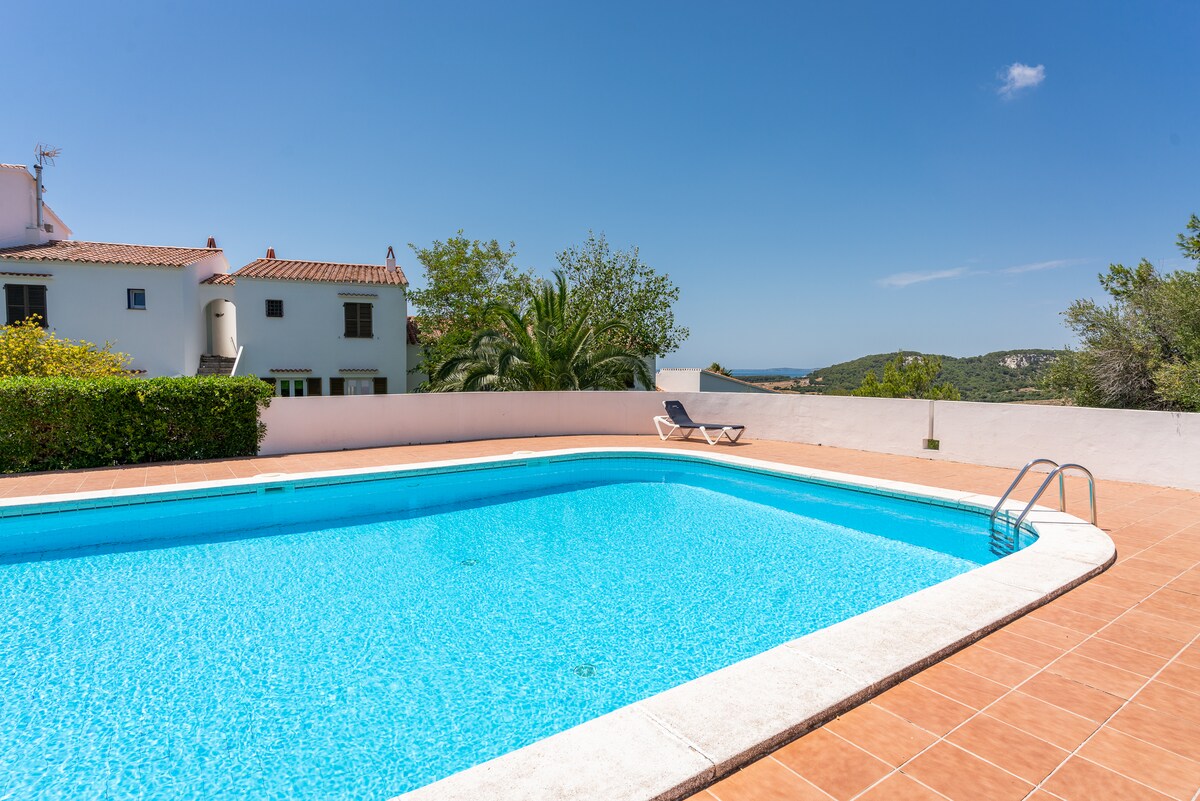 A charming villa with ocean views, near the great Son Bou beach, on a quiet street at the end of the Torre Soli Nou development, an 18-minute walk to the beach and 4 minutes from Cami de Cavalls that leads to Santo. It has an outdoor terrace and a beautiful pool (5.5x3.5 meters), not heated, surrounded by a very well-kept flower garden. A staircase leads to the terrace to enjoy the ocean view. https://instagram.com/lamaison_de_lo?utm_medium=copy_link