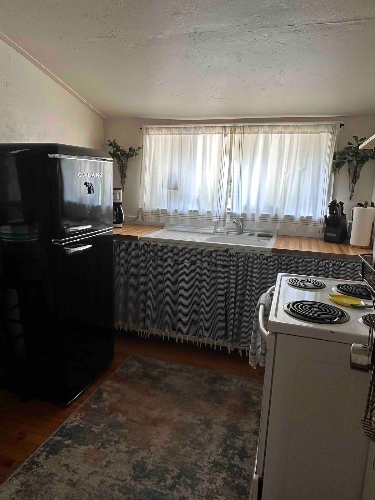 This place is a winter and summer wonderland. Our cottage is a small 50's style with much character tucked away in the woods. We’re surrounded by the 70,000 acre Sleeping Bear Dunes. There’s plenty of skiing, canoeing, hiking and fishing, peace and quiet. We're on the boarder of Benzie and Leelanau Counties, the best of wine regions this side of the Mississippi and a true artisanal food destination It's a short drive to Honor, Empire or Glen Arbor. Traverse City is 25 miles east.