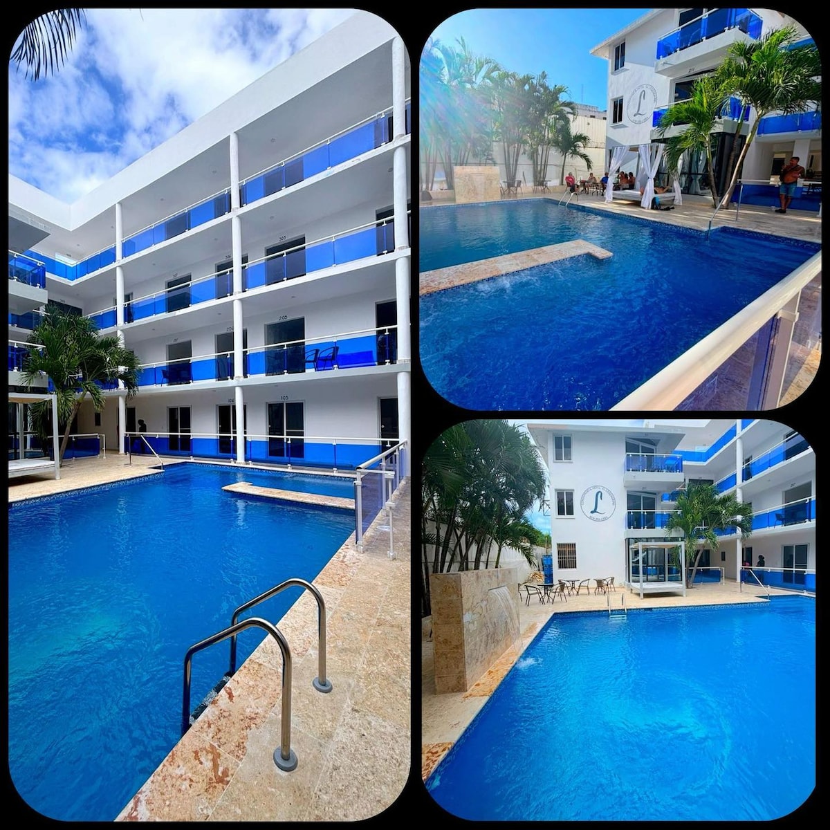 One-bedroom apartment located in the most comfortable, quiet and private place in Sosua. Close to the best restaurants and beaches. In addition to a large pool where you can sunbathe and relax. The apartment consists of a spacious balcony, open patio, 24/7 security, air conditioner, kitchen, washing machine, wifi, and a smart TV.