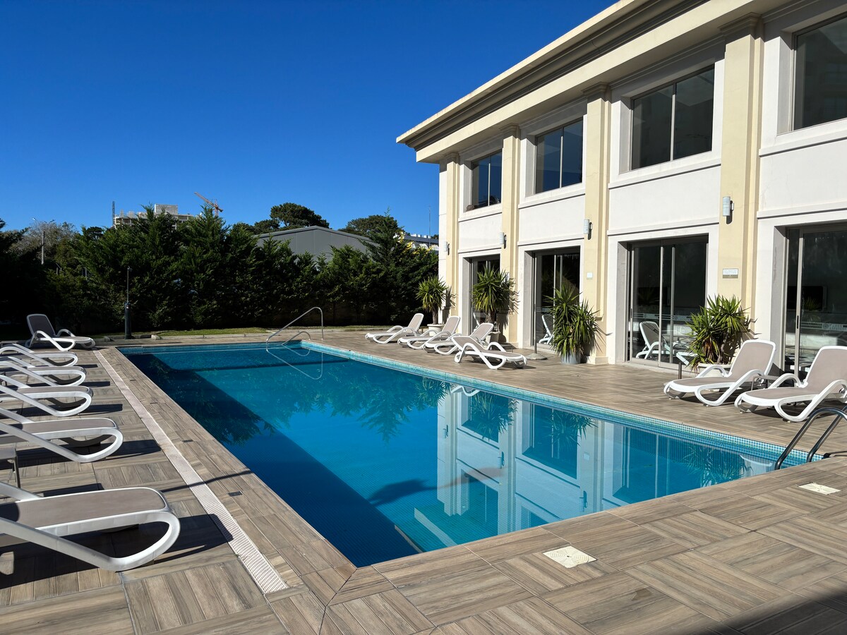 Beautiful and comfortable studio in Place Lafayette, LUXURY building in an excellent area. Located on Av. Roosevelt in front of Punta Shopping. Meters from the Design District and Boulevard Gourmet. Studio, new, furnished, with Wi-Fi, daily housekeeping service. Heated pools open year-round. Sauna, 2 Gyms, 3D Cinema, Game Room, Barbecues, Laundry, among other services.