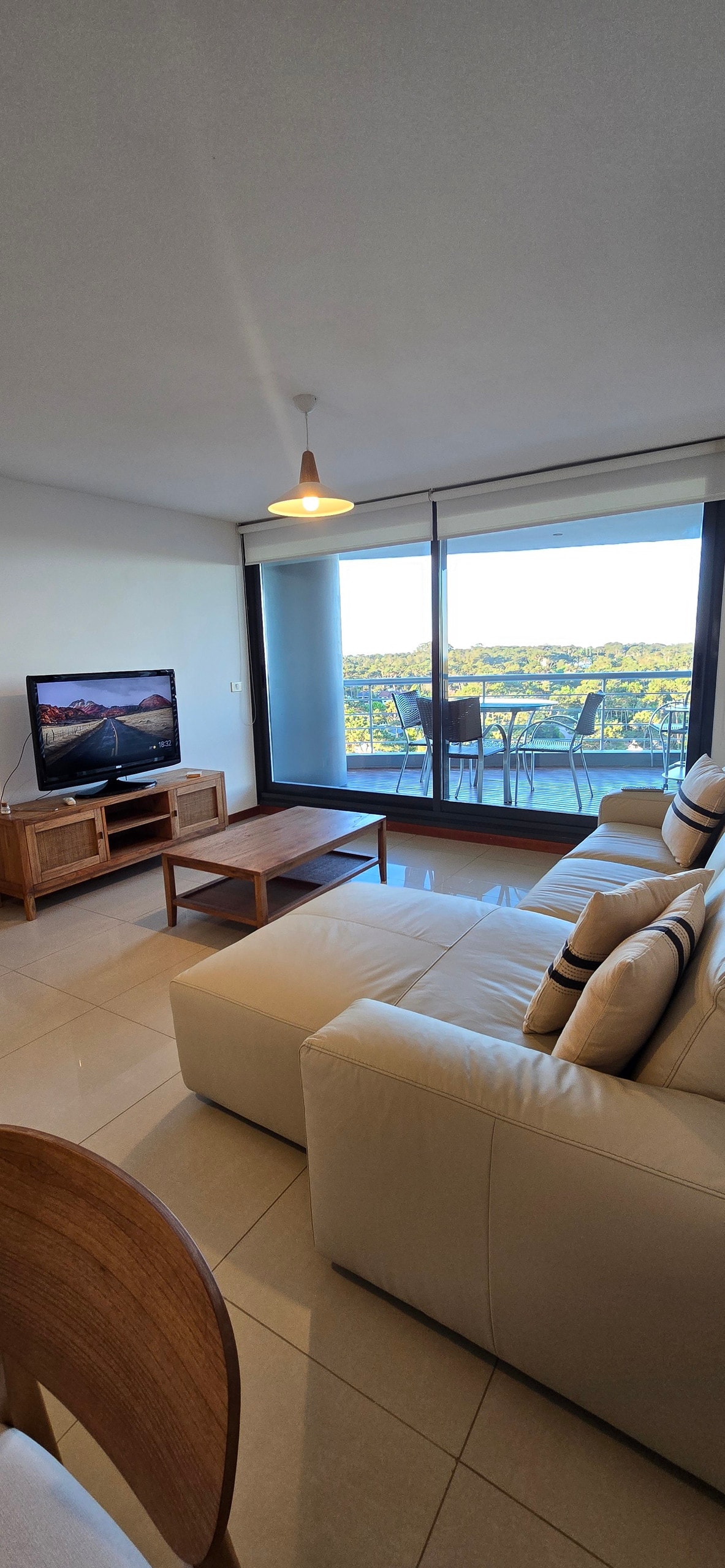 Unbeatable apartment 3 rooms, in a 21-degree complex. It has a full kitchen (dishes, dishwasher, microwave, oven, refrigerator with freezer, among others), dining room, 2 balconies overlooking the forest (1 of them with grill), 2 full bathrooms, one bedroom with double bed, and one with two single beds. Private terrace with grill, dining set, and toilet. The tranquility of the forest, in the middle of the city, just 2 blocks from Playa Brava, stop 22.