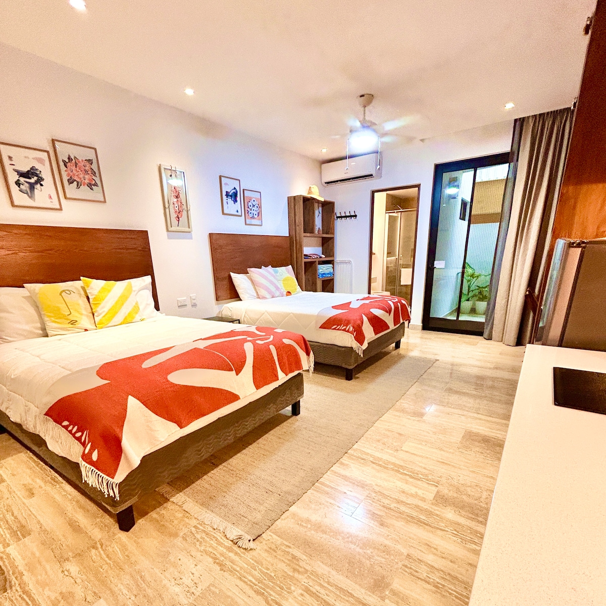 A bright, peaceful and cozy studio in Playa Del Carmen that is centrally located to wonderful cafe's, restaurants and shopping. Enjoy the comforts of AC, high speed wifi, comfortable queen size bed, kitchenette, spacious private washroom and front patio. Enjoy a beautiful 10 minute walk to La Quinta Avenida and all the beautiful beaches. Have day of exploring on the cruiser bikes along 10th Avenida or visiting other beautiful beaches such as Playa Esmeralda, Playa 72 or Playa 88