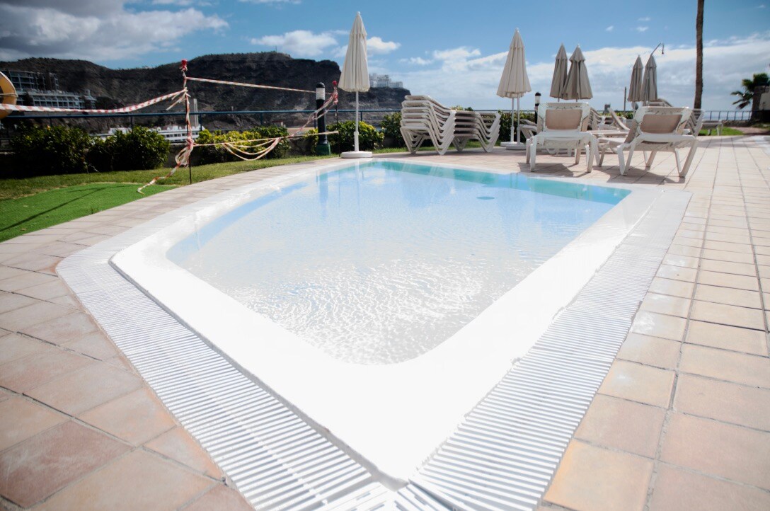 Enjoy peace and stunning views in this modern one-and-a-half-room apartment in Playa del Cura, Gran Canaria (Monsenor Complex). The property’s highlight is the spacious private terrace, offering breathtaking panoramic views of the Atlantic Ocean and the complex’s heated pool.