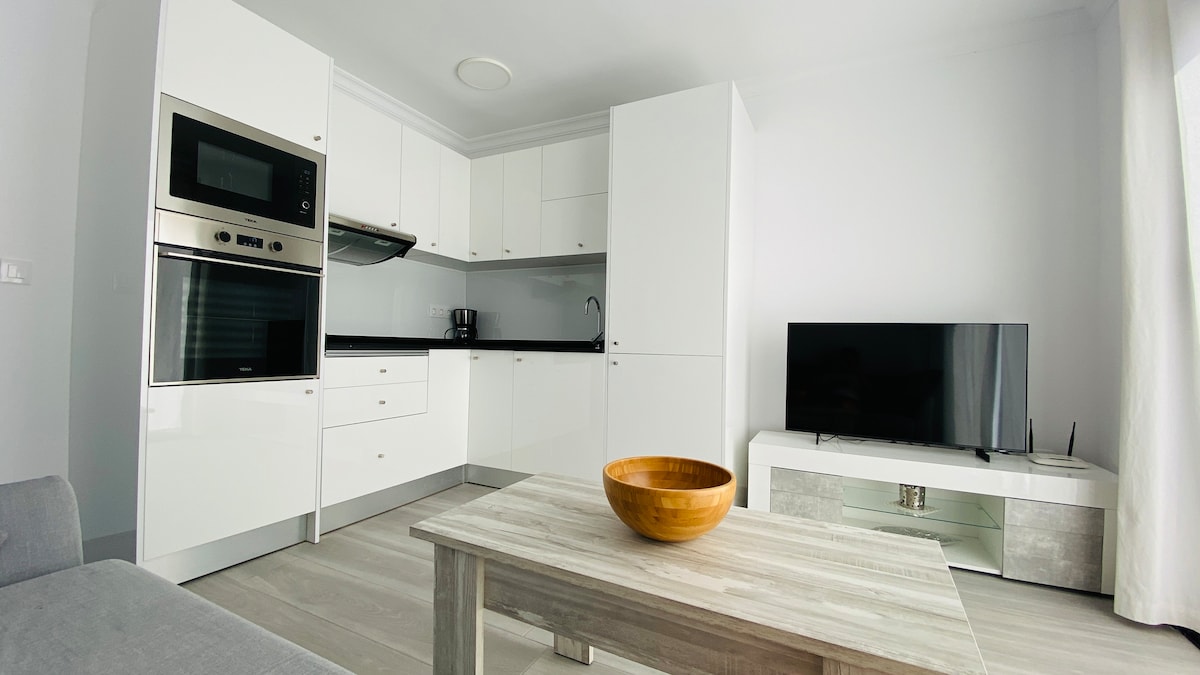 Exclusive apartment in Playa del Cura, just a 4-minute walk from the beach, where you can hear the relaxing sound of the sea waves from your private terrace. This modern accommodation has two perfectly equipped bedrooms, an elegant bathroom, and a spacious living room with an open kitchen, and has free parking and a heated pool. An oasis of luxury in a prime location, with access to two beaches and all the comforts for an unforgettable stay. Your best destination!