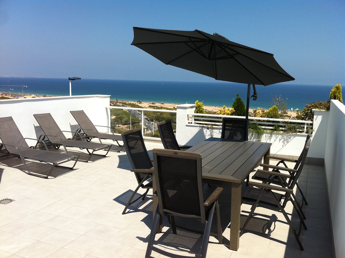 Spectacular 120 meters on the beachfront recently renovated with dining room convertible into a 60 meter terrace, stunning views of the sea and the coast and chill-out relaxation area. Designer kitchen and 2 full bathrooms. All exterior, 3 very spacious and double bedrooms. Reverse osmosis water purifier. Direct access to the beach from the urbanization. Newly built swimming pool. Free parking. Kid-ready! License VT-463132-A