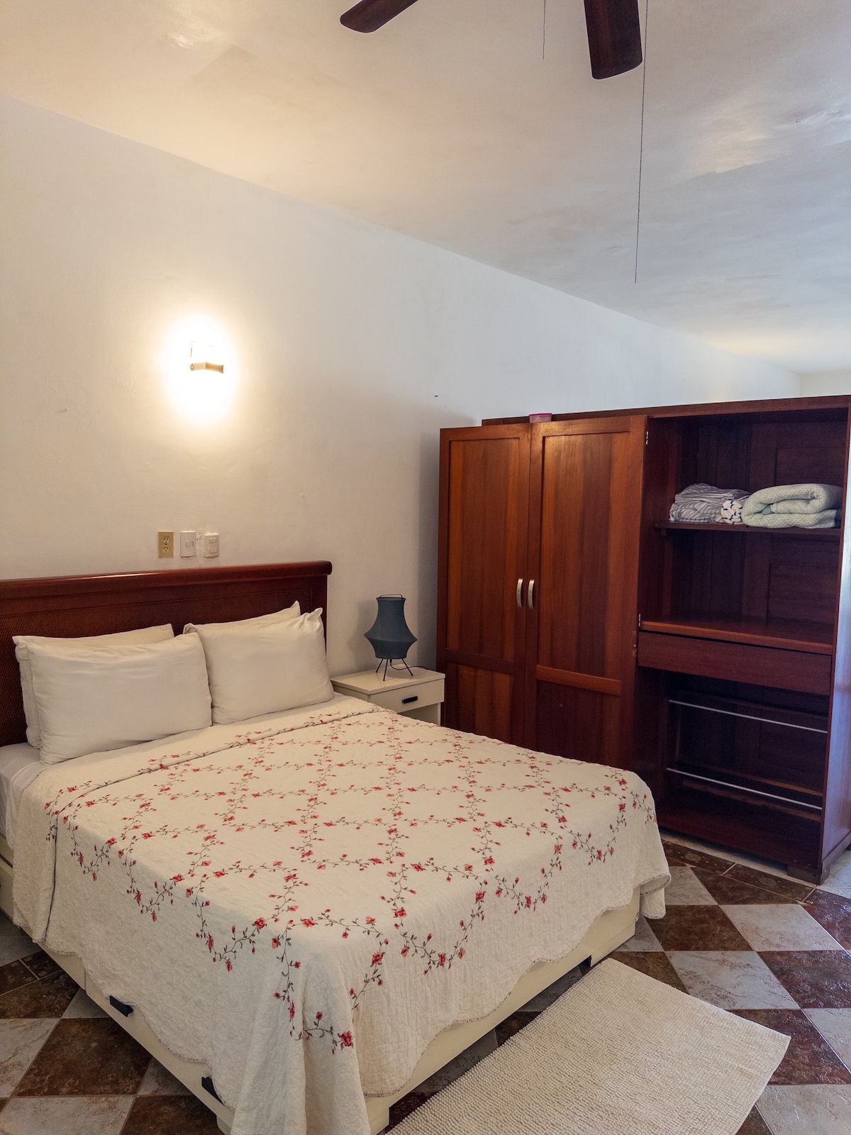 Just 5 minutes from the beach, this stylish second-floor apartment offers 2 bedrooms with queen beds, 2 full bathrooms, A/C, Wi-Fi, fully equipped kitchen, free parking, and 24/7 security. Its high vaulted ceiling keeps it cooler and adds a beautiful sense of space. From our spacious balcony, you can enjoy breezes and, depending on the season, partial views of the ocean. We’re 100% guest friendly, and our on-site caretaker Isidro is always available to assist you.