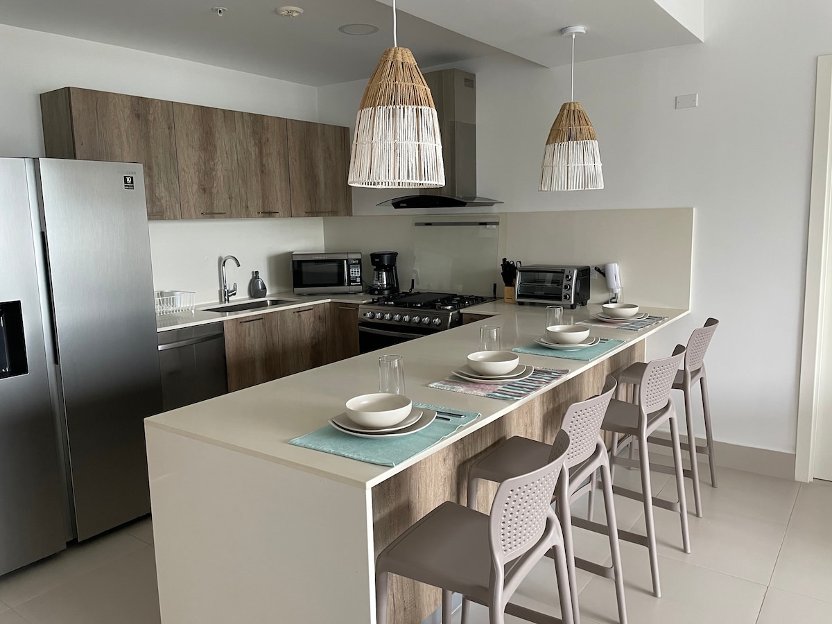 Nice apartment: comfortable, cool and relaxing... very comfortable beds available and a fully equipped kitchen with washer and dryer, ideal for long stays. Condo with 3 large swimming pools and one for children, volleyball court, barbecue area, facing the sea and with access to the beach. Good quality internet and cable service to stay connected and homeoffice, 15 minutes from Coronado where there are supermarkets and plazas. We accept Pets only for stays longer than 15 days...