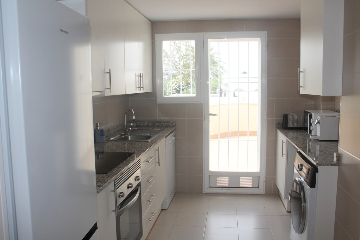 We are in Las Marinas (12 km from Dénia), Deveses beach. The apartment after renovation, fully furnished. It is located in a quiet place 3 minutes from the beach on foot. The apartment is on the ground floor. Nearby are several supermarkets, bars, restaurants. We have paddleboards for rent. It has all the conditions so that you don't have to worry about your vacation. Tourist license number CV-VUT0517475-A