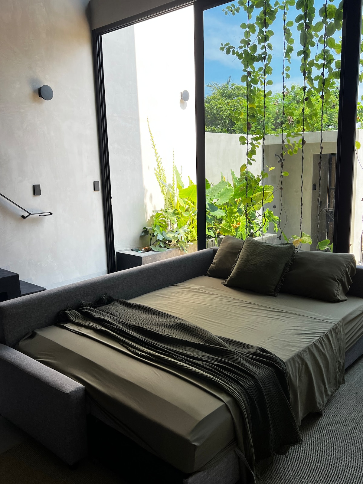 Relax in this unique and peaceful getaway. Enjoy this cozy apartment for 2 guests, just a few minutes’ walk from the beach and the main street. Located on the 2nd floor, it features a bedroom with a king-size bed, air conditioning, TV, and a workspace. The open living area, located under a palapa roof, connects directly to the small pool with a partial ocean view, plus Starlink Internet and a fully equipped kitchen. Perfect for unwinding after a day at the beach.