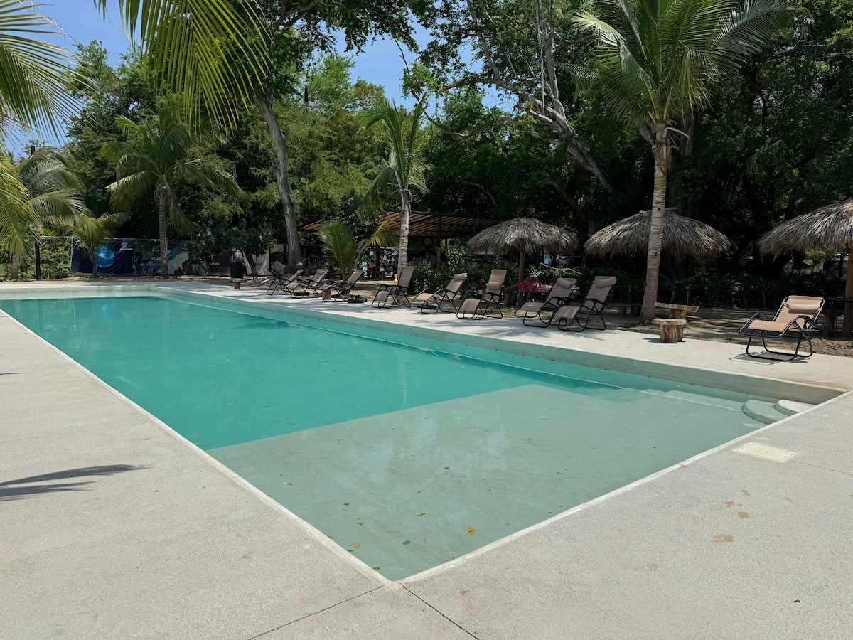 Habitación estilo Loft, ubicada en el primer nivel, ideal para dos personas, con opción para cuatro personas con fácil acceso y vista panorámica al océano, atardeceres y la naturaleza que lo rodea. Equipada con dos camas matrimoniales, hamaca, clóset, cocineta, frigobar, cafetera, baño completo, aire acondicionado, TV e internet Starlink. Alberca compartida y espacios al aire libre, perfectos para descansar y disfrutar de un entorno natural que invita al contacto con la esencia del lugar.