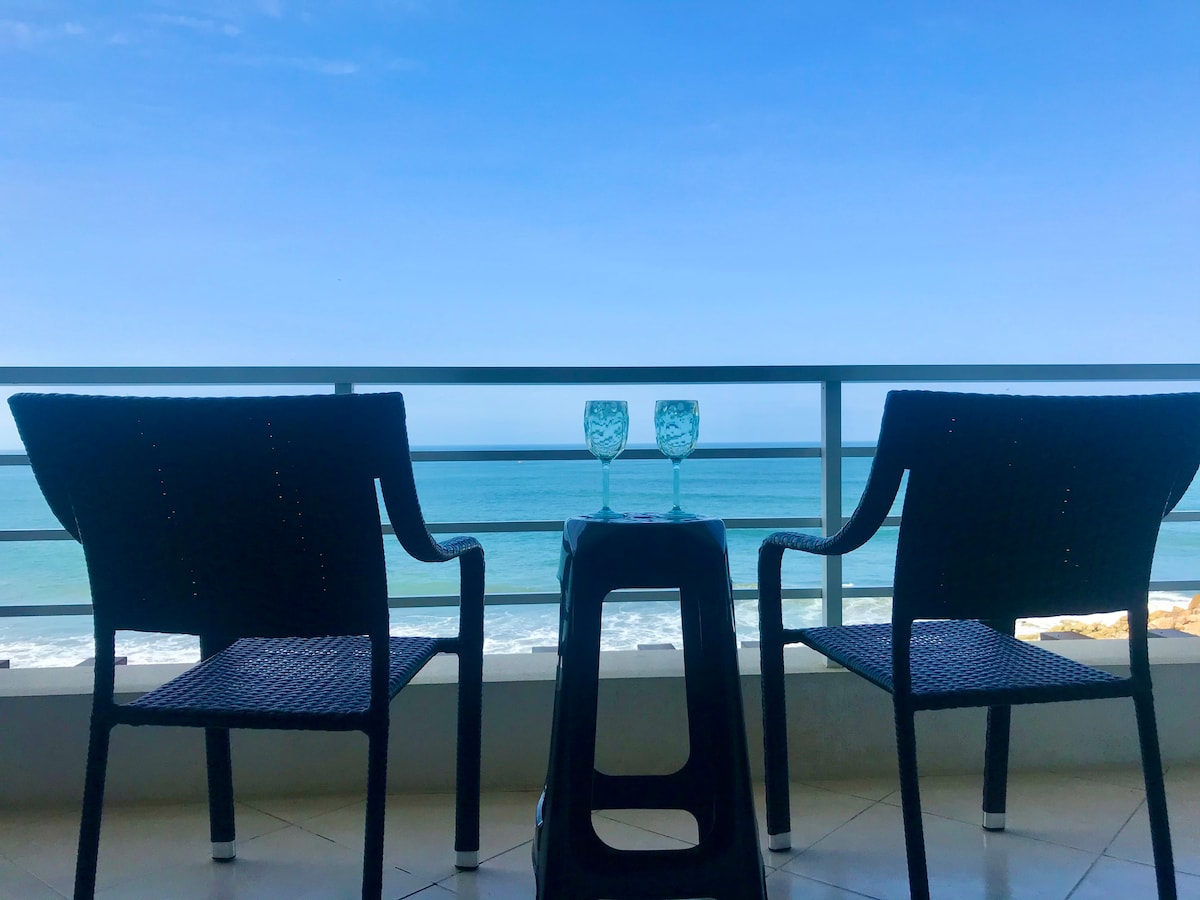 Enjoy a homey waterfront space. An elegant, spacious place, capable of comfortably accommodating up to eight people on the 10th floor by the sea, excellent for spending a few beautiful days with the family, relaxing with friends, sharing as a couple or simply getting away from the noise of the city and retiring to look at the stars 🌟 Always safeguarding your well-being with 24/7 security at the checkpoint and on the beach; in addition to protecting your privacy with a functional elevator with access card to the apartment.