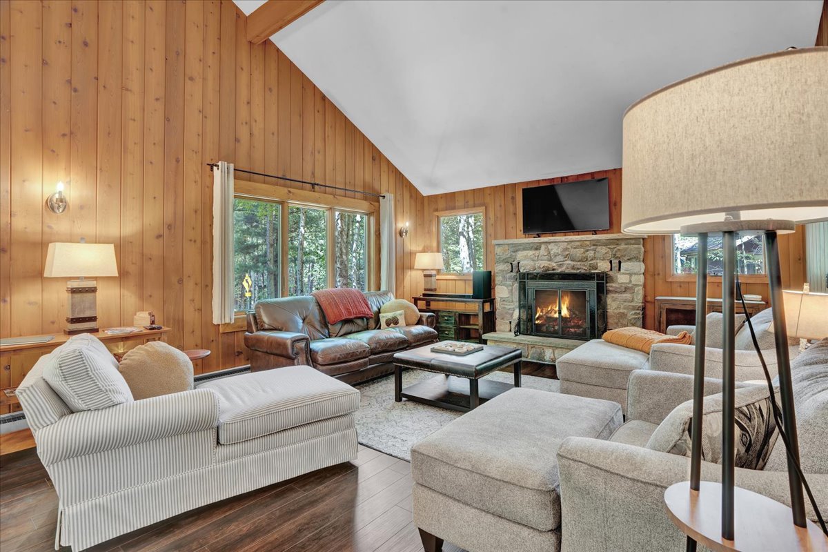 "Miller Chalet" is a picturesque log home set in the heart of 5 Star Lake Naomi. Steps to the waterfront, the home sits on a private acre and boasts 4600 sq feet, 5 bedrooms, 4 full baths and three floors of living space. A wide open main floor greets you, with a spectacular 30 ft vaulted great room, floor to ceiling stone wood burning fireplace, and picturesque wall of windows out to the world. The home also features a finished lower level with fireplace, billiards, bar area & theater room.