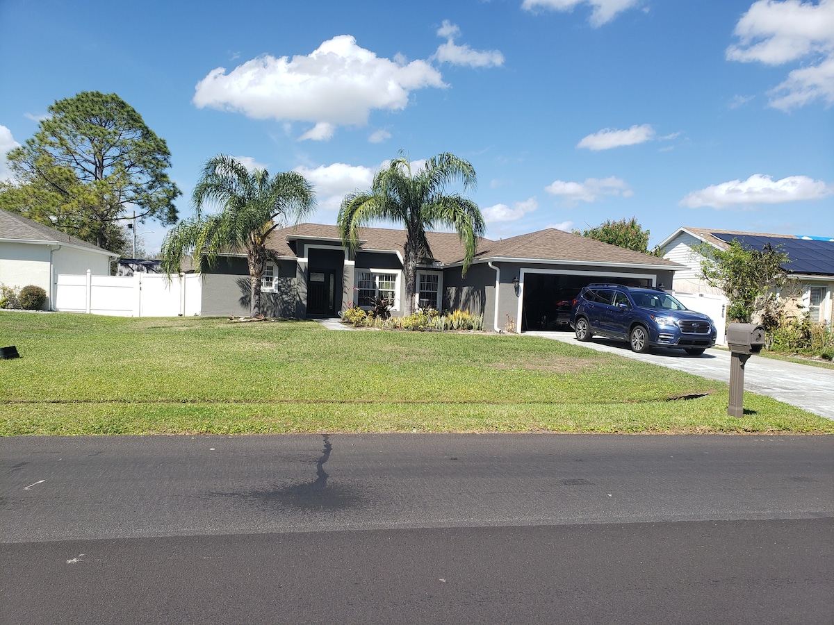 Kick back and relax in this calm, stylish space. Our home is for people who want to relax but also have the choice to visit the amusement parks in the Orlando area, so if your intention is to visit, the parks on a daily basis, we might be a bit far. the average drive time is between 40 to 50 minutes to the nearest parks. Our home is for the mature family and those who are looking for family time more than park time.