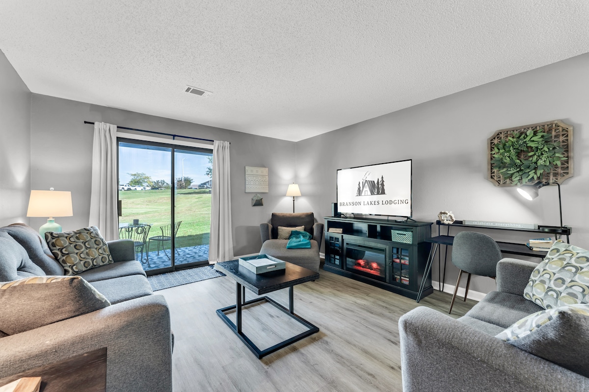 Beautifully decorated two bedroom, two bathroom condo on the golf course in the gated Pointe Royale community. Enjoy tennis, indoor & outdoor pools, and a well-equipped fitness center. The condo is a short distance to the lake where you can bring your fly fishing gear. Close to Branson shows, theaters, and shopping. We allow up to two dogs with approval. There is a $75 pet fee per stay (not per night). Socials: @Branson_rentals Branson Lakes Lodging