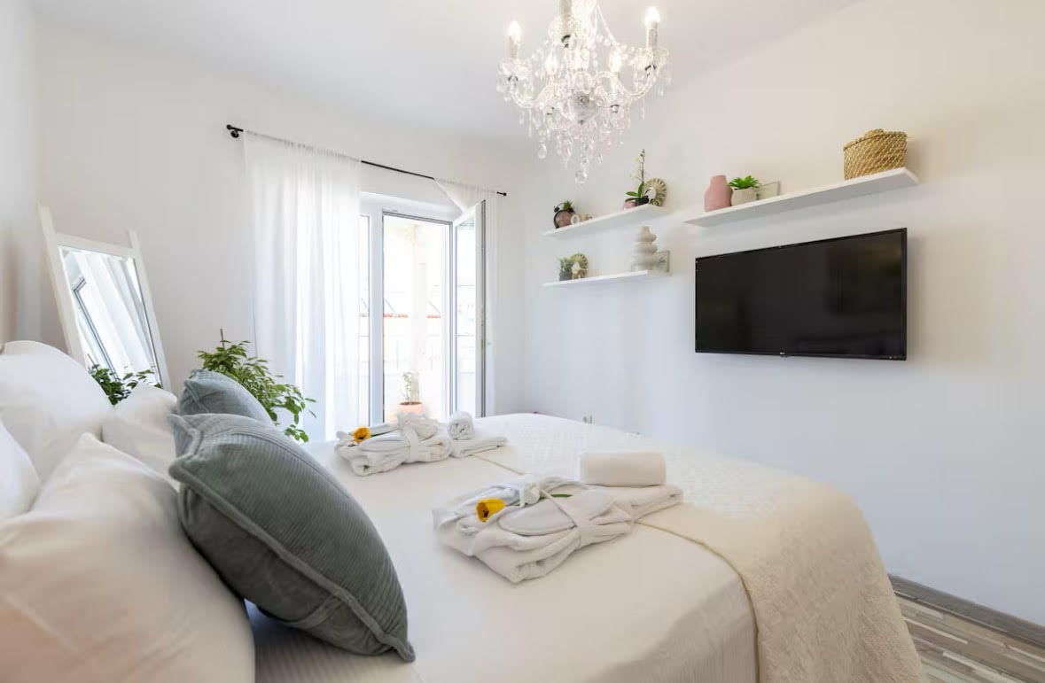 Wake up to stunning sea views at One&Only apartment, a bright and elegant getaway designed for ultimate relaxation. With its airy interiors, cozy living space and spacious terrace perfect for sunbathing or brunch with a view, this apartment offers a perfect escape. Located few steps from beach and nice sea walk from lively old town, it is a perfect blend of comfort and island charm.