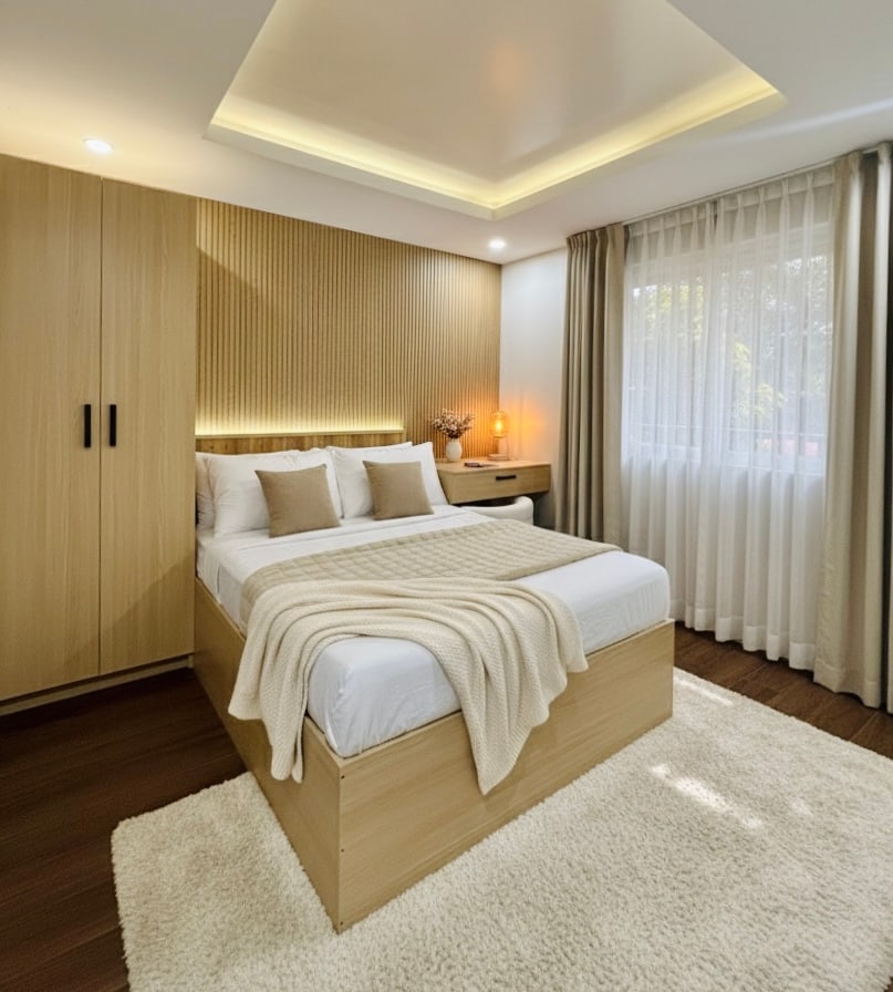 This is a cozy and contemporary transient home providing luxury at an affordable price. It is located in a quiet, peaceful neighborhood just 5 minutes from the town proper and the nearest beach. The unit includes a living room, mini kitchen with dining area, two (2) bedrooms, and two (2) bathrooms— spacious enough for families or group of friends.