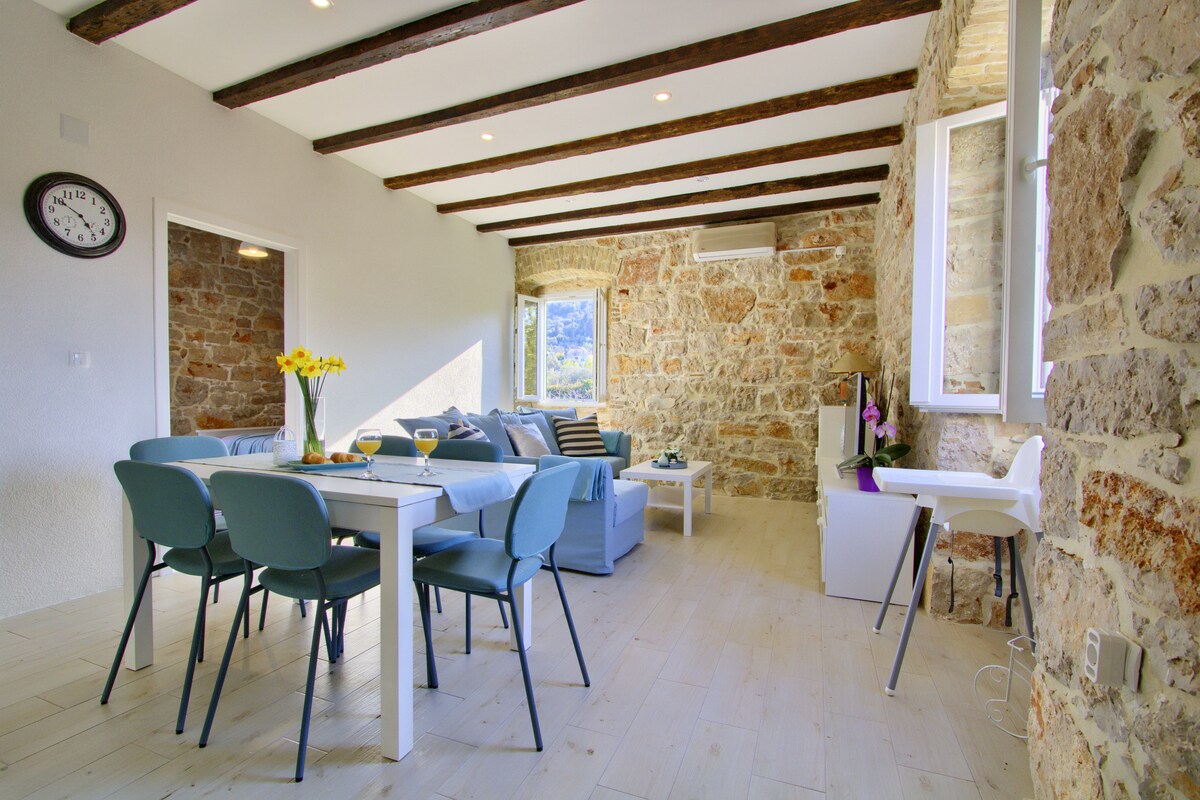 If you're seeking to experience the idyllic island life, Stone House Dora is the perfect destination for you. Situated in the heart of Preko, this recently refurbished, authentic Mediterranean house is certain to captivate you with its charm and beauty. The exquisite stone walls create a feeling of belonging to the island itself. You can relish the breathtaking view from the window or unwind in the backyard with a glass of wine while stargazing, or catch the first ray of sunshine in the morning.