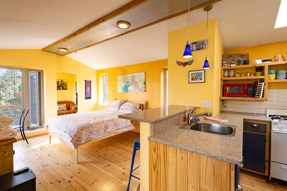 Over 100 reviews—all 5 stars—offering a consistently exceptional stay. Wake up to breathtaking Sangre de Cristo Mountain views in this cozy 350 sqft retreat. Perfect for couples or solo travelers, designed for comfort, calm, and a peaceful getaway. Our casita earned 100 perfect 5-star reviews in 12 months for its layout, serene vibe, views, and hosting. Sip coffee with mountain views, unwind in bright living space, and enjoy full privacy with a fully equipped kitchen and private entrance.