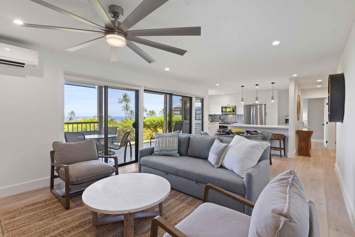BRAND NEW 130K Renovation+BRAND NEW Hawaiian Styled Contemporary Decor. Located right on Wailea Blue Golf course in the Grand Champions at Wailea with incredible ocean views from the patio.We are perfectly located just down from Money Pod+up from The Shops of WaileaCheck out our other property #201 VRBO (2050379)+#1905 VRBO(1222713) in The Palms we are Super Host with 5 STAR reviews)!! BOOK UP TO 365 DAYS.